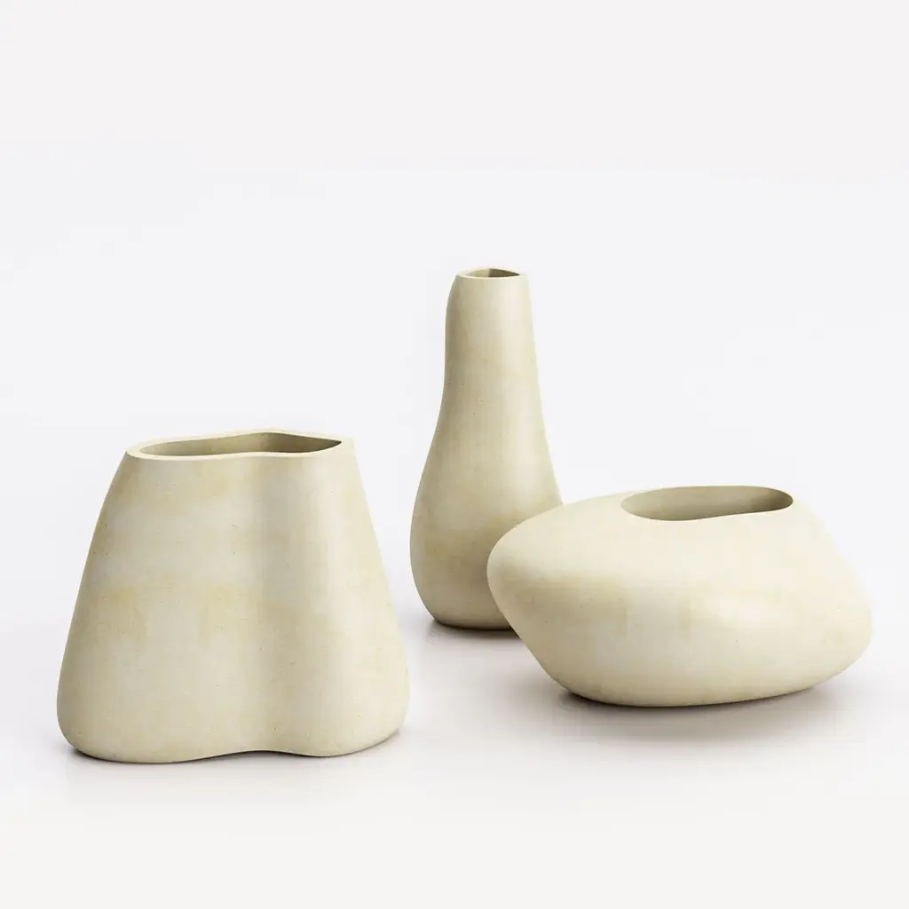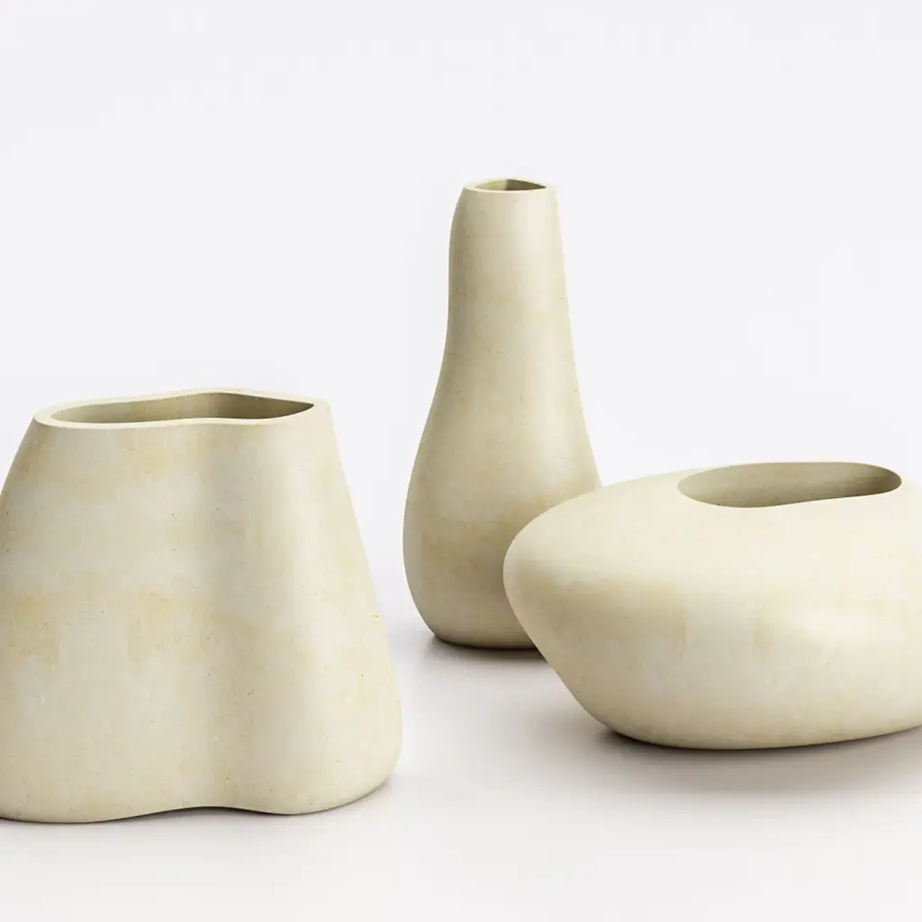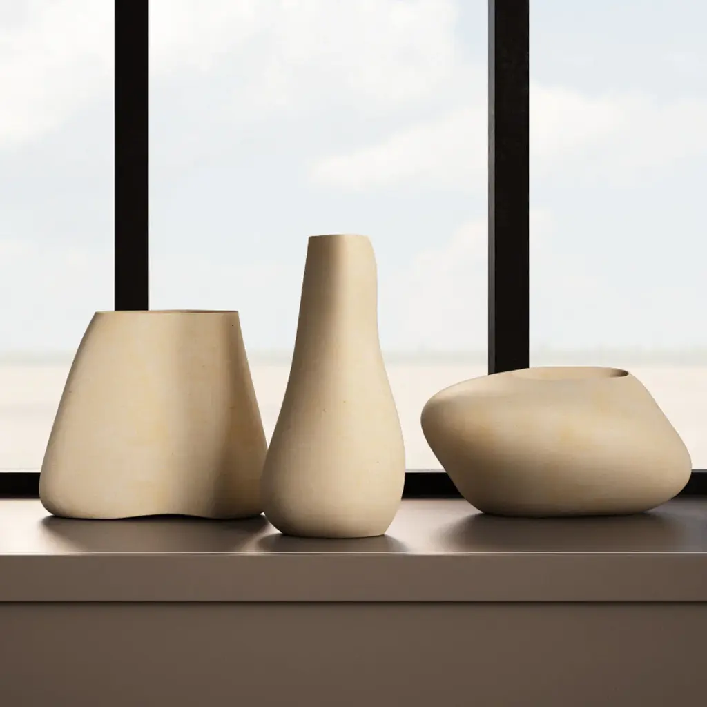 Urano B Beige Lecce Limestone Vase By Luca Scacchetti