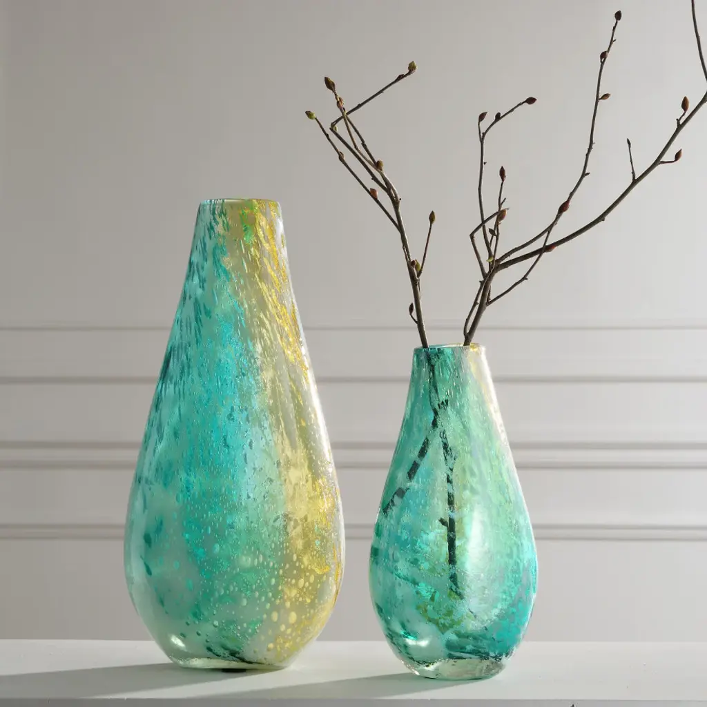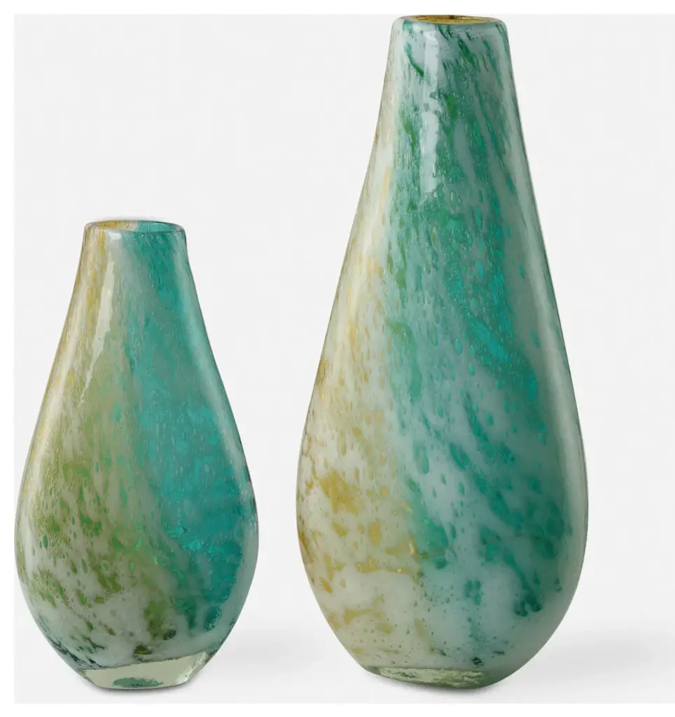 Uttermost - 18157 - Vases, S/2 - High Tide - Exquisite Teal, Amber, And Gold