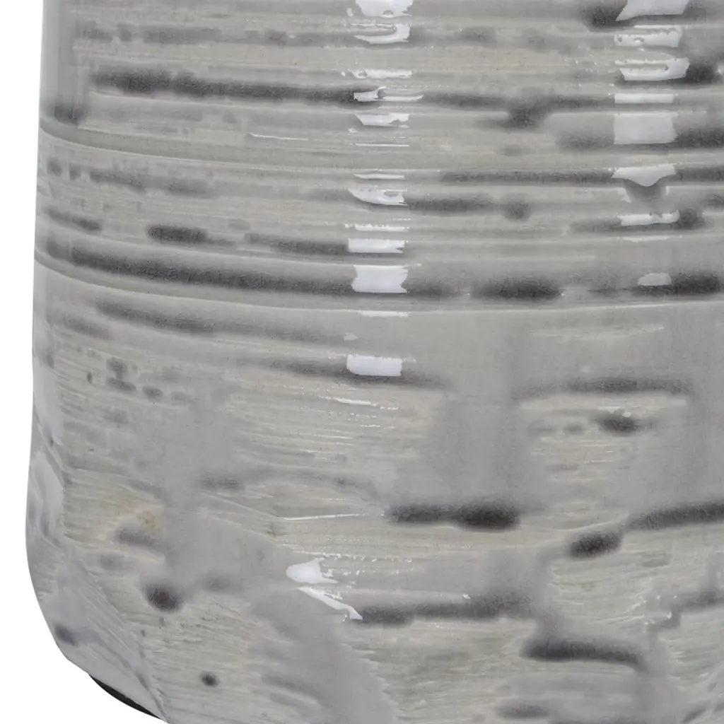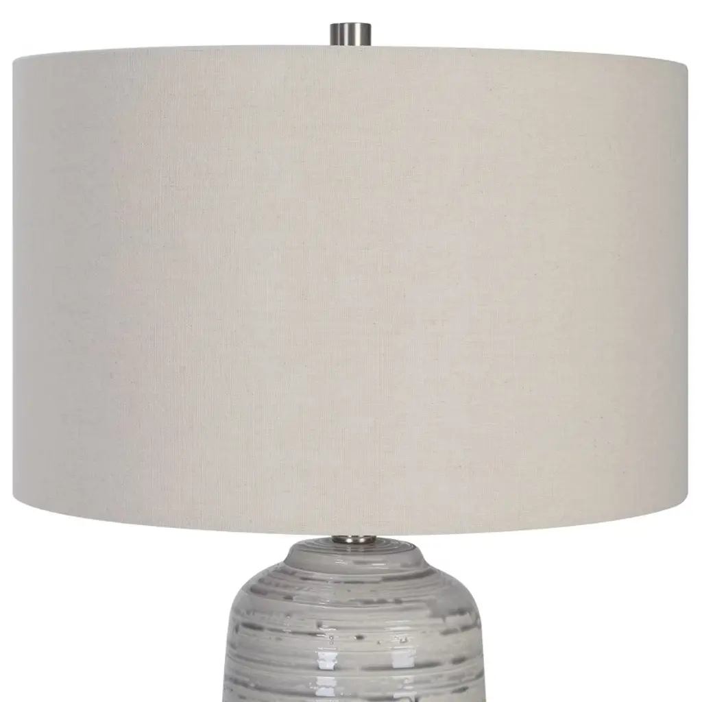 Uttermost Cyclone Table Lamp – 24.75"h Ivory Ceramic Urn With Gray Stripes & Brushed Nickel Accents