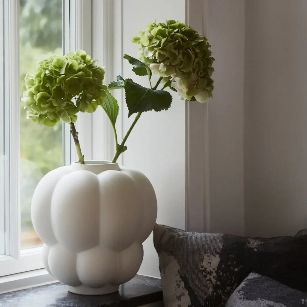 UVA is the essence of voluminous elegance. The shape and meaning creates the finest relation, as UVA is the word for grape. Like clusters on a vine plant that turns into wonderful wine, UVA vase embodies joy and renewal in the most stunning and exquisite way. When embracing the mighty UVA vase, you will find that the dynamic design with its vibrant curves truly are a masterpiece that stands gorgeously on its own. The vase looks even more beautiful and lively placed in your window still styled with branches or flowers, while the daylight shines upon your home and UVA vase creation.
