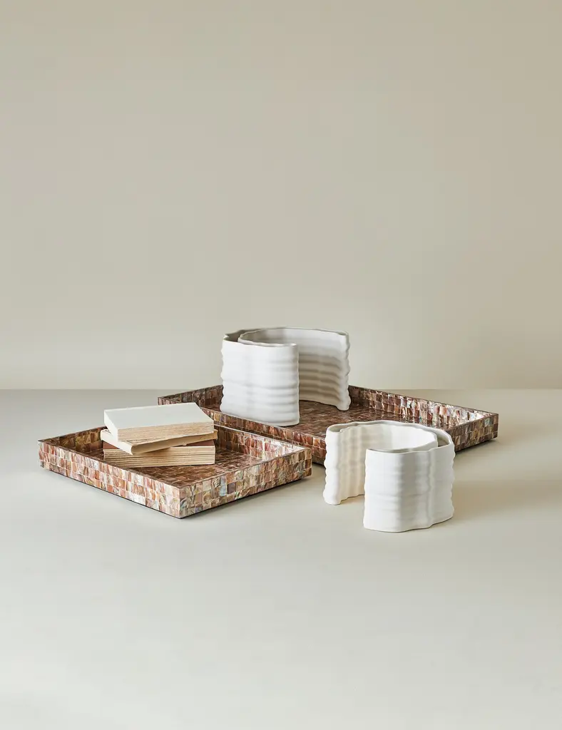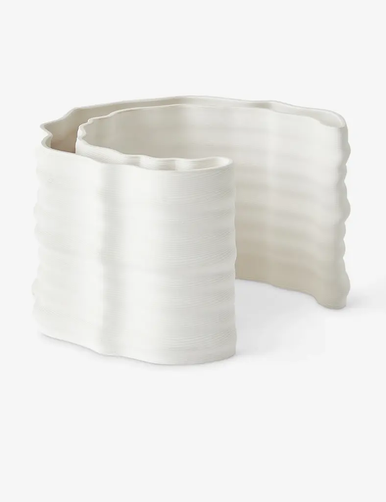 Soft curves and a matte white glaze lend this vase a fresh, modern feel. Its flowing shape stands out on a shelf or styled with simple stems.