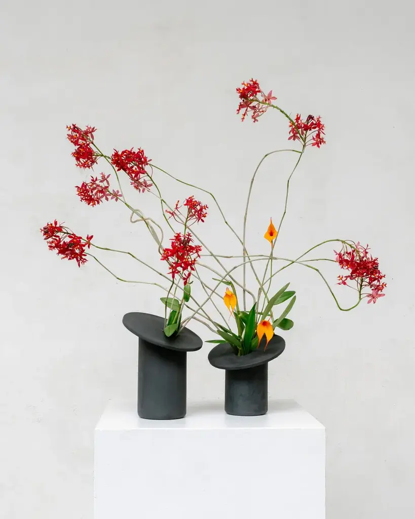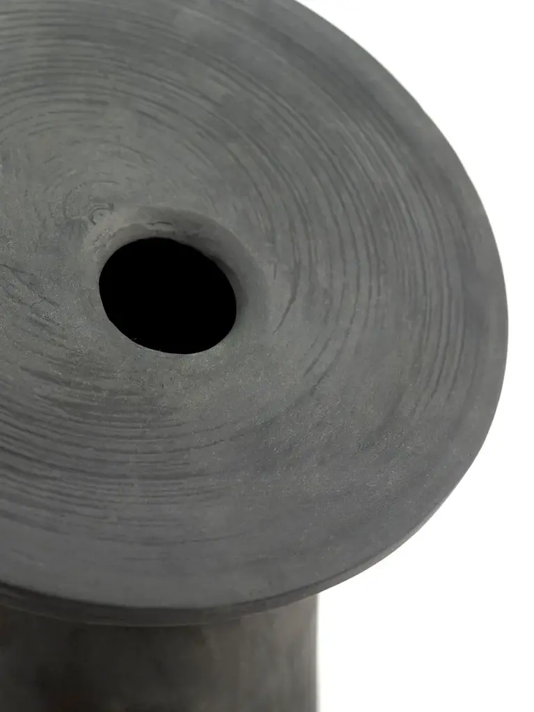 Vases 01 is a round vase made of gres.This vase’s name refers to the sense of balance that is implied by the disc’s position in relation to the other vase. But it also strikes a balance between function and aesthetics, dynamism and tranquility, extrovert and introvert, and masculine toughness and feminine elegance.With Balancing Vases, Elise Maes sees a great dream come true, namely a design based on vases she made when aged sixteen that she could bring out on a large scale. The name refers to the balance that the discus appears to seek, including its relation to the other vase. But it is also a balancing act between function and pure object, playful and static, extrovert and introvert, rugged masculine and elegant feminine. The Balancing Vases have something sculptural but are also functional and go together as objects in communication when they are together.