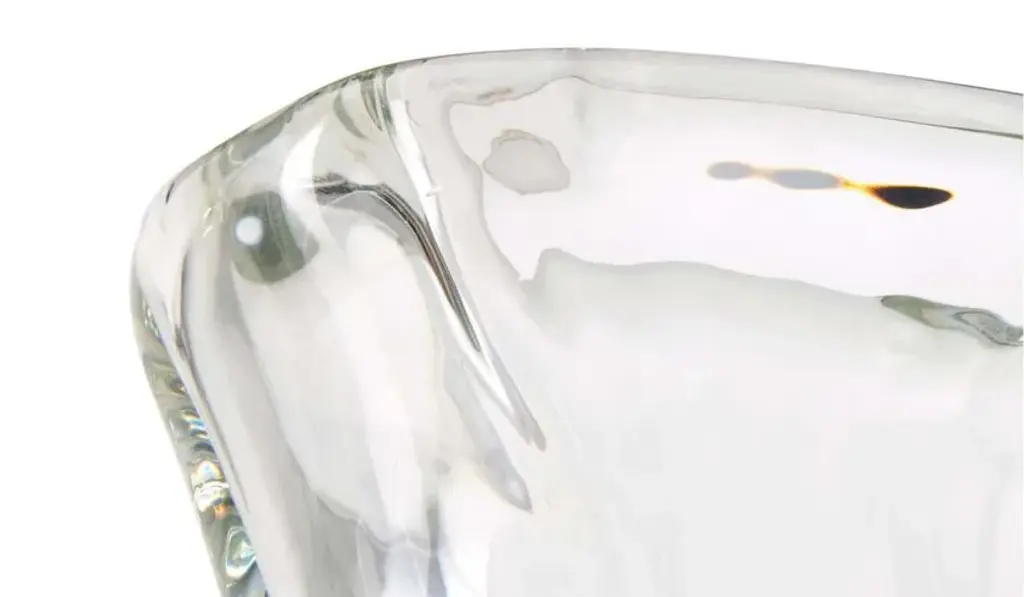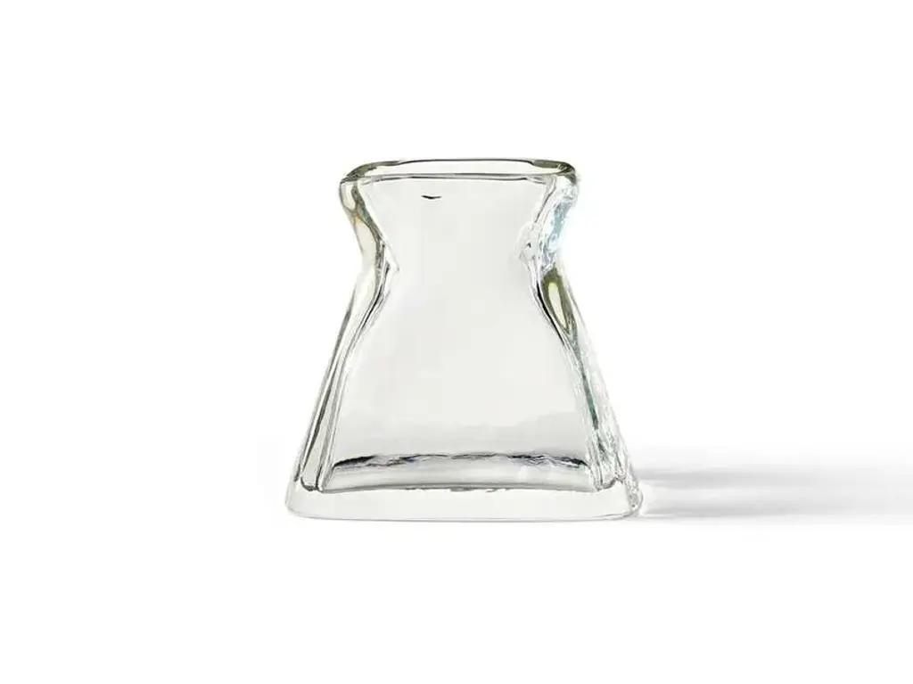 Between 1940 and 1942, Charlotte Perriand was active in Japan, tasked by the former Ministry of Commerce and Industry with defining the new orientations and strategies to impart to industrial production in the Land of the Rising Sun. The Vase à fleurs échancré dates back to this creative period that saw the pioneer of modernity engaged in an exchange of views with the Asian artisan tradition and its key players. The vase is a sculptural creation in mould-blown glass, reprocessed by hand, a technique that makes each piece unique and one-of-a-kind. The deliberately uneven shape, soft texture of the surface and bold thickness of the rounded border emphasize the substance and texture of the object.