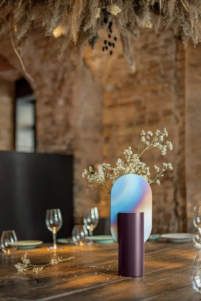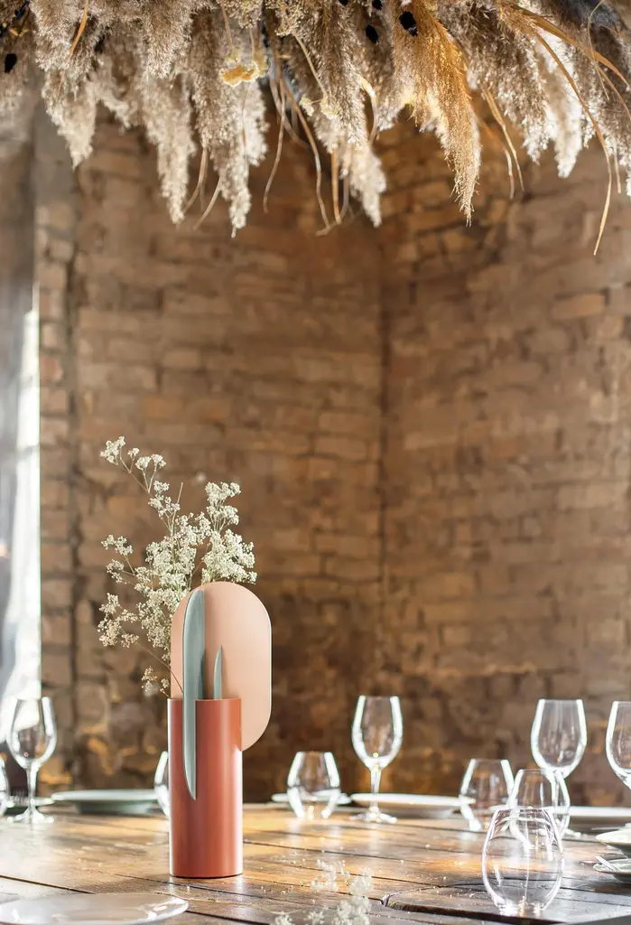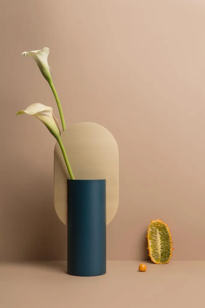Genke Vase — part of the Suprematic Collection by NOOM, designed by Kateryna Sokolova, embodies the brand’s signature fusion of contemporary, bold, sculptural design with functional artistry.Inspired by the geometric works of Kazimir Malevich and the Suprematist movement of the early 20th century, the piece transforms pure forms — circles, squares, lines, and rectangles — into an expressive, architectural object for the home.The geometric structure is more than decorative — its internal dividers and holders allow for customizable floral arrangements, enabling you to create elegant, balanced compositions. Even without flowers, Genke stands as a small art object, adding a refined statement to any interior, from modern residential spaces to creative commercial settings.In ocean green and brass, it plays with color and material contrast, balancing cool tones with warm metallics. Much like a NOOM accent chair, lounge chair, or sofa, it becomes a centerpiece that invites conversation, seamlessly integrating with interiors defined by style, precision, and meaning.Brand: NoomDesigner: Kateryna SokolovaMaterials: Brass, painted steelColor Scheme: CS3 - ocean green and brassDimensions: H 38 cm x W 17 cm x D 10 cmNet Weight: 2 kg.