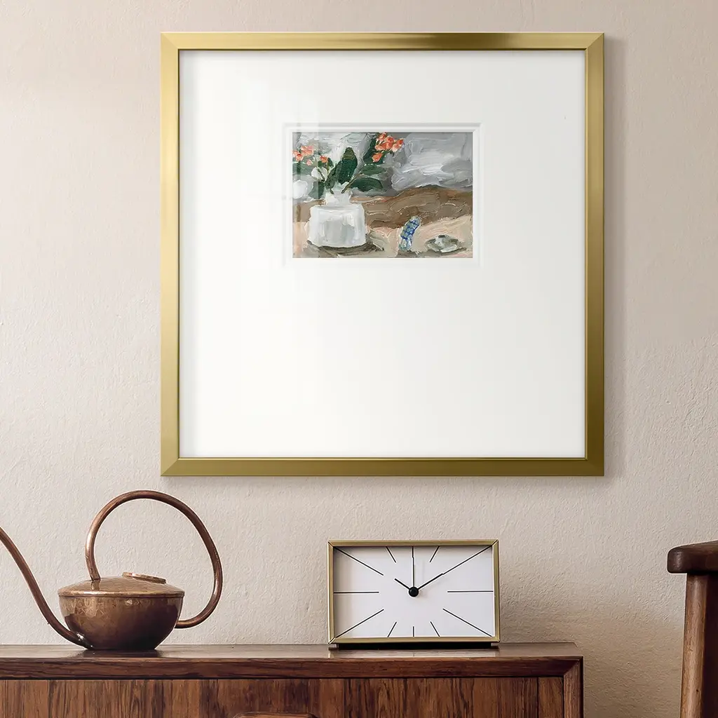 Vase of Pink Flowers IIIPremium Framed Print A framed cold pressed paper print featuring superior double matting and quality frame. 2 SIZES AVAILABLE 16''X16''' - Overall Size 20''X20''' - Overall Size Each piece is made to order. Each piece comes with hanging hardware. Made in the USA Ready to Hang Giclee Paper Print Plexiglass Beveled Matt Board Double Matte Board