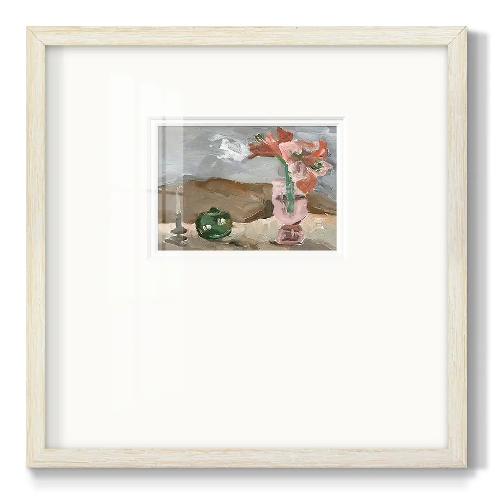 Vase of Pink Flowers IIPremium Framed Print A framed cold pressed paper print featuring superior double matting and quality frame. 2 SIZES AVAILABLE 16''X16''' - Overall Size 20''X20''' - Overall Size Each piece is made to order. Each piece comes with hanging hardware. Made in the USA Ready to Hang Giclee Paper Print Plexiglass Beveled Matt Board Double Matte Board