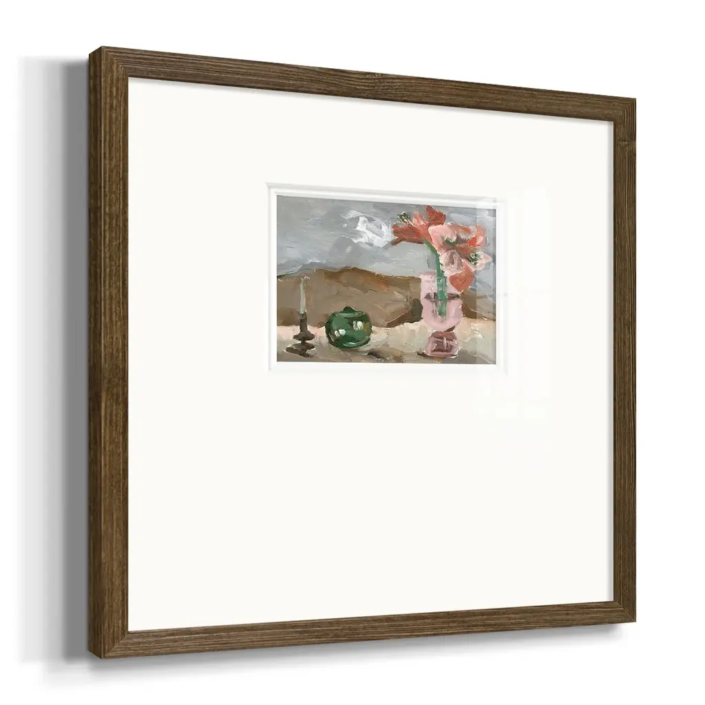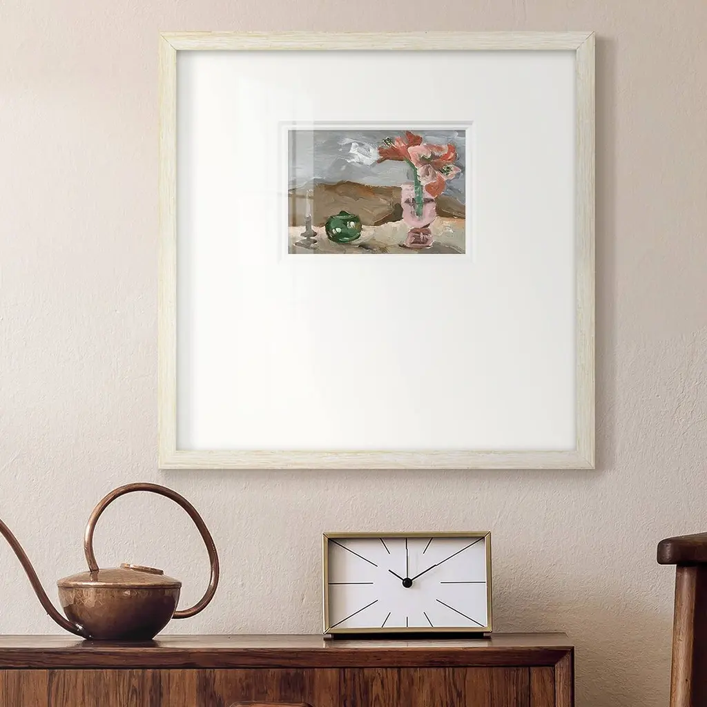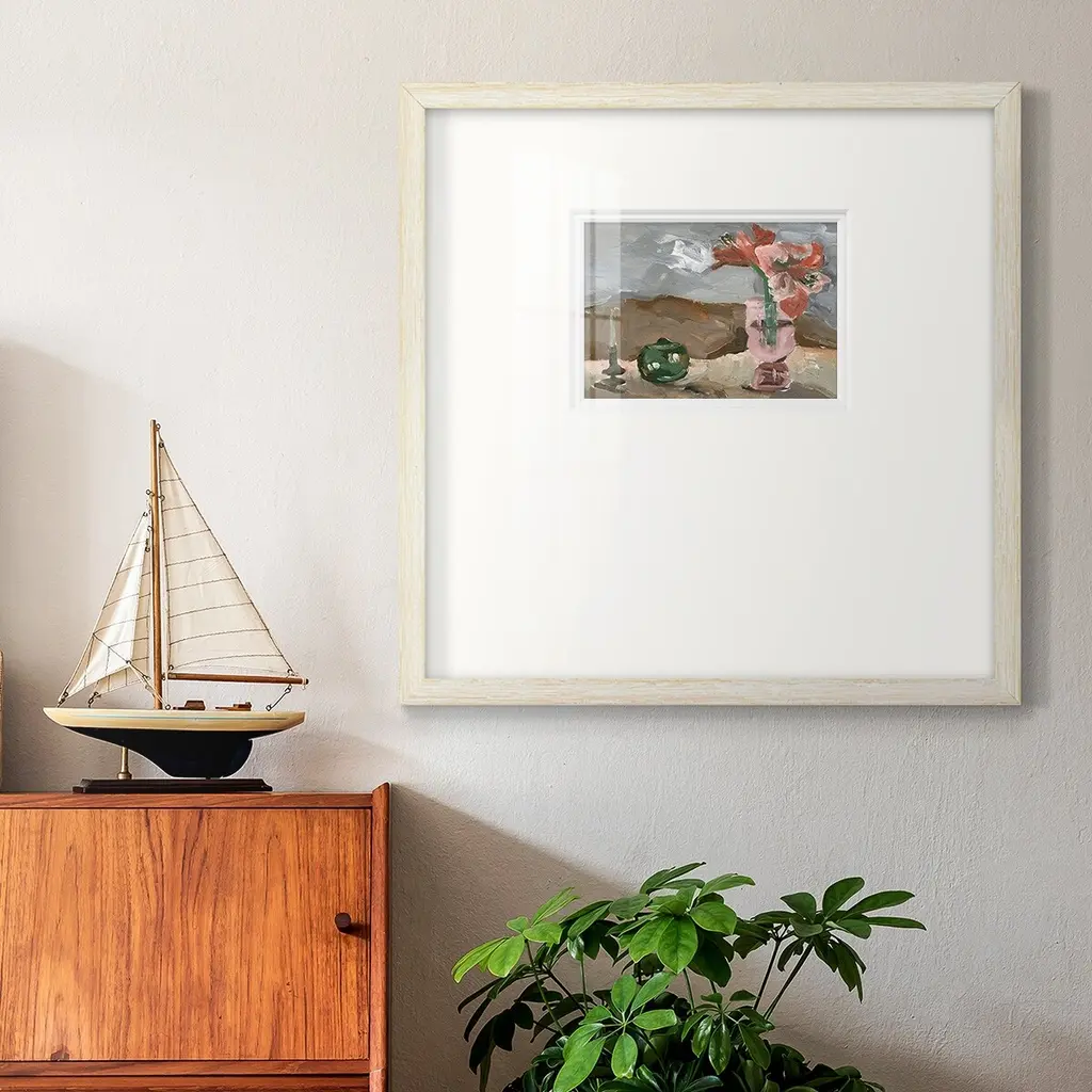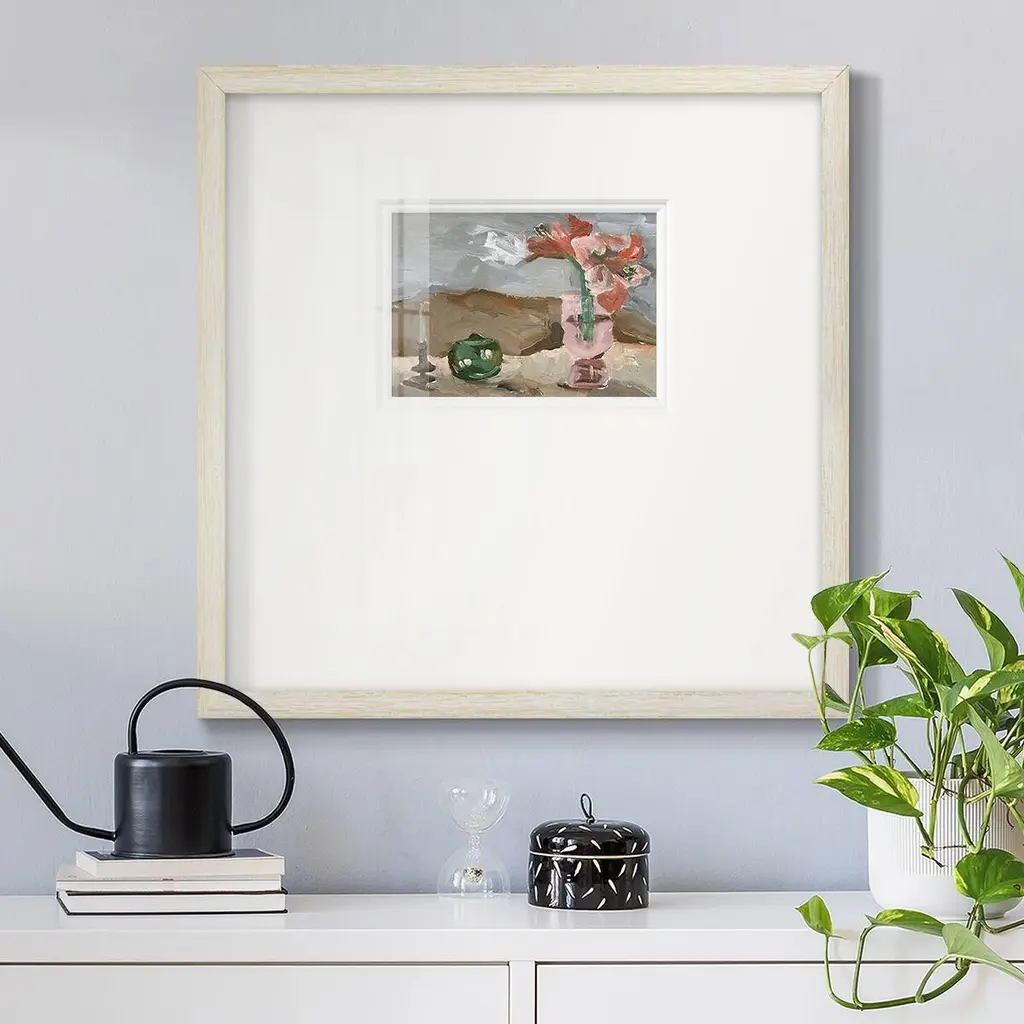 Vase of Pink Flowers IIPremium Framed Print A framed cold pressed paper print featuring superior double matting and quality frame. 2 SIZES AVAILABLE 16''X16''' - Overall Size 20''X20''' - Overall Size Each piece is made to order. Each piece comes with hanging hardware. Made in the USA Ready to Hang Giclee Paper Print Plexiglass Beveled Matt Board Double Matte Board