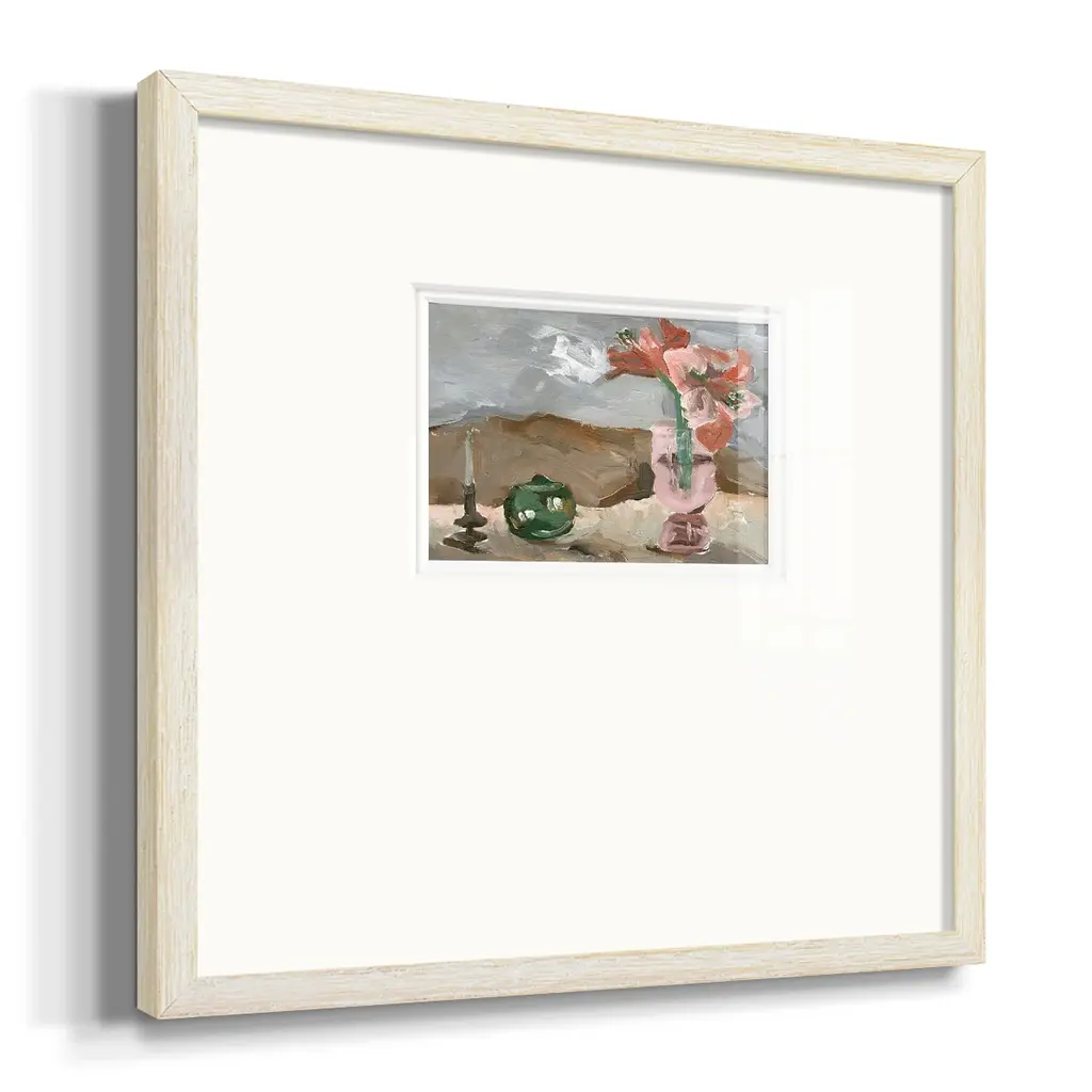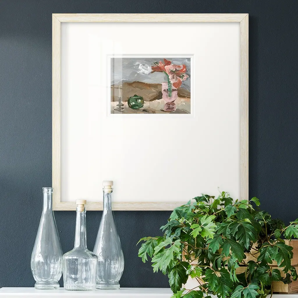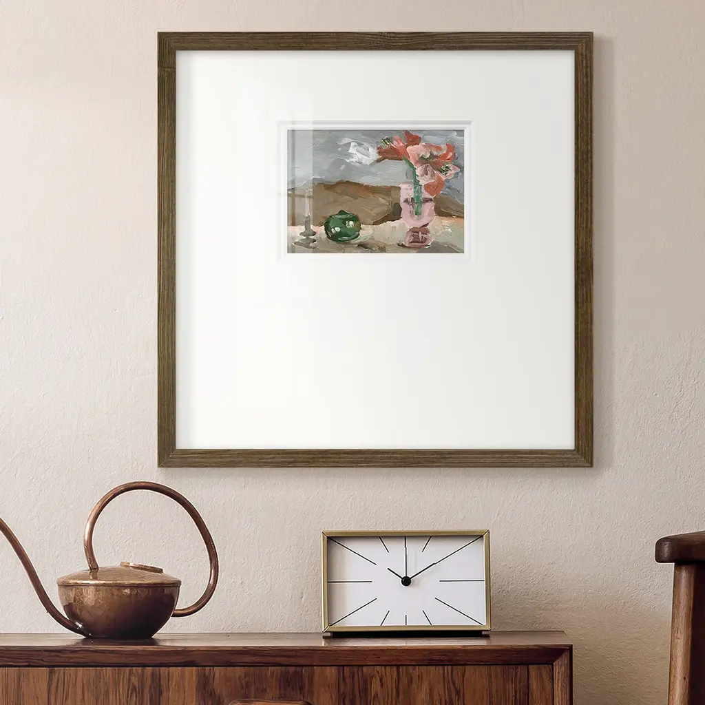 Vase of Pink Flowers IIPremium Framed Print A framed cold pressed paper print featuring superior double matting and quality frame. 2 SIZES AVAILABLE 16''X16''' - Overall Size 20''X20''' - Overall Size Each piece is made to order. Each piece comes with hanging hardware. Made in the USA Ready to Hang Giclee Paper Print Plexiglass Beveled Matt Board Double Matte Board