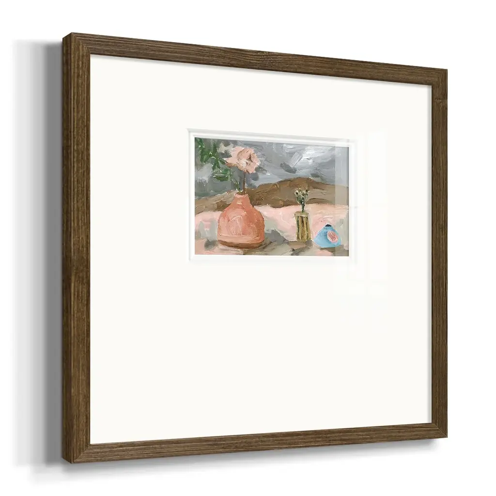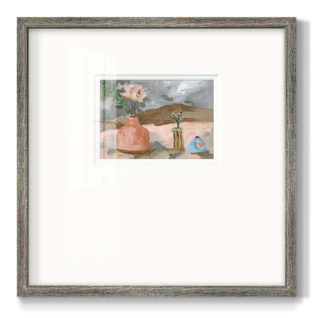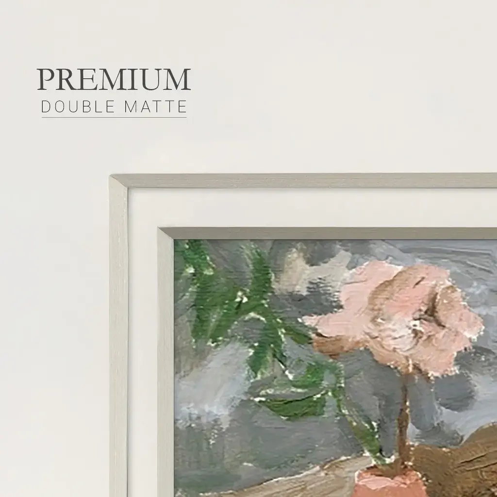 Vase of Pink Flowers IPremium Framed Print A framed cold pressed paper print featuring superior double matting and quality frame. 2 SIZES AVAILABLE 16''X16''' - Overall Size 20''X20''' - Overall Size Each piece is made to order. Each piece comes with hanging hardware. Made in the USA Ready to Hang Giclee Paper Print Plexiglass Beveled Matt Board Double Matte Board