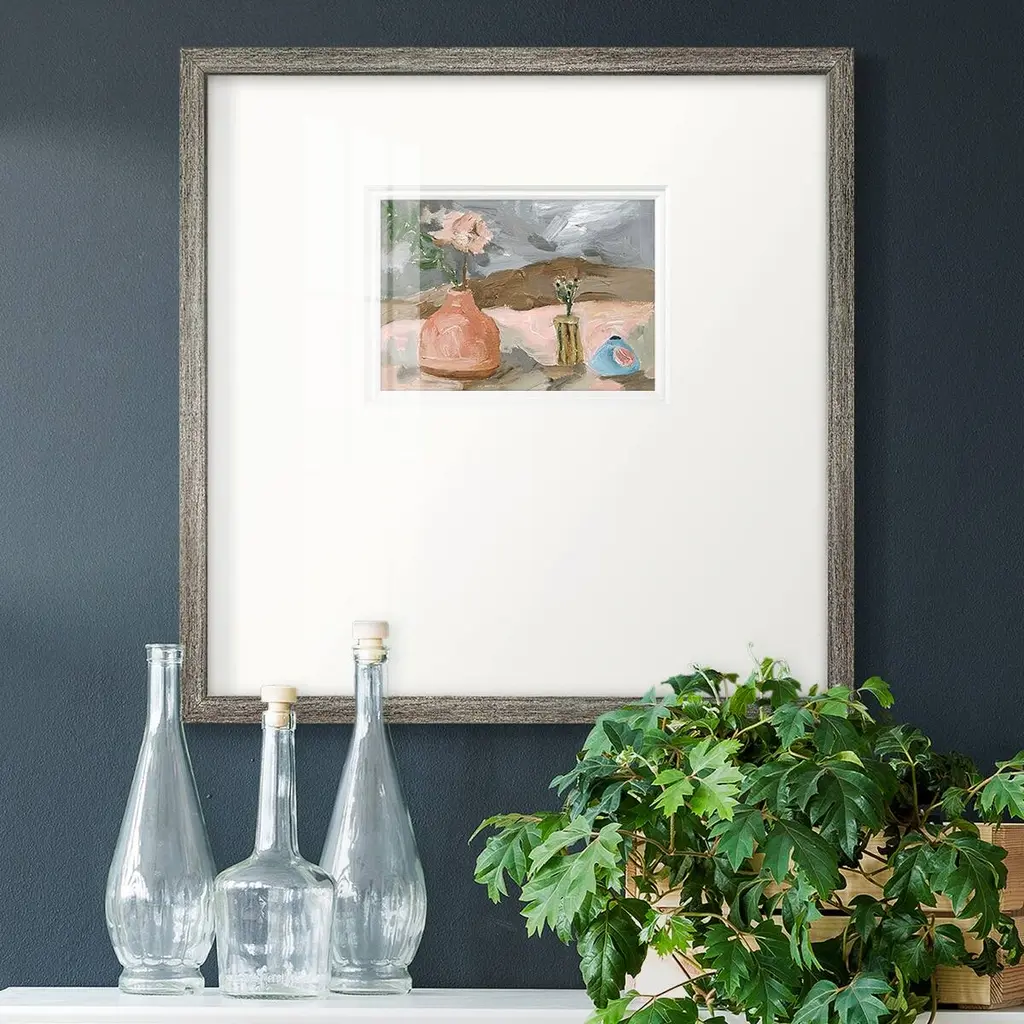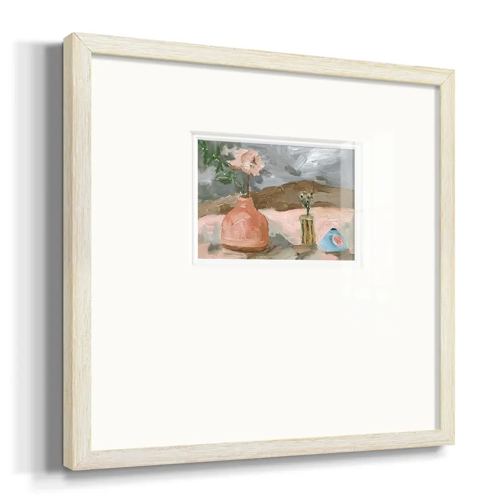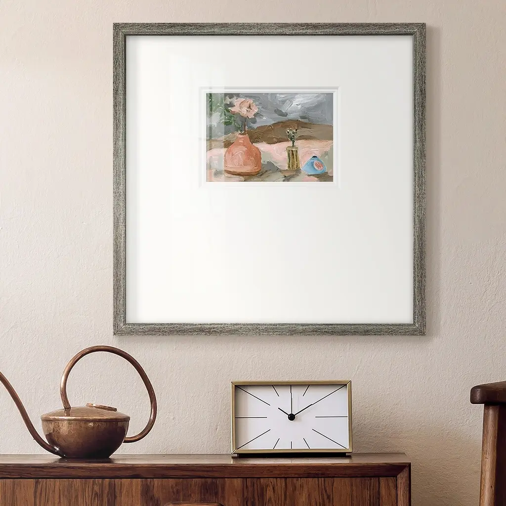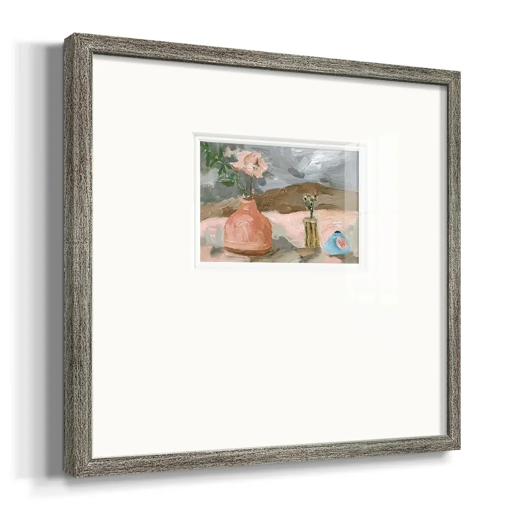 Vase of Pink Flowers IPremium Framed Print A framed cold pressed paper print featuring superior double matting and quality frame. 2 SIZES AVAILABLE 16''X16''' - Overall Size 20''X20''' - Overall Size Each piece is made to order. Each piece comes with hanging hardware. Made in the USA Ready to Hang Giclee Paper Print Plexiglass Beveled Matt Board Double Matte Board