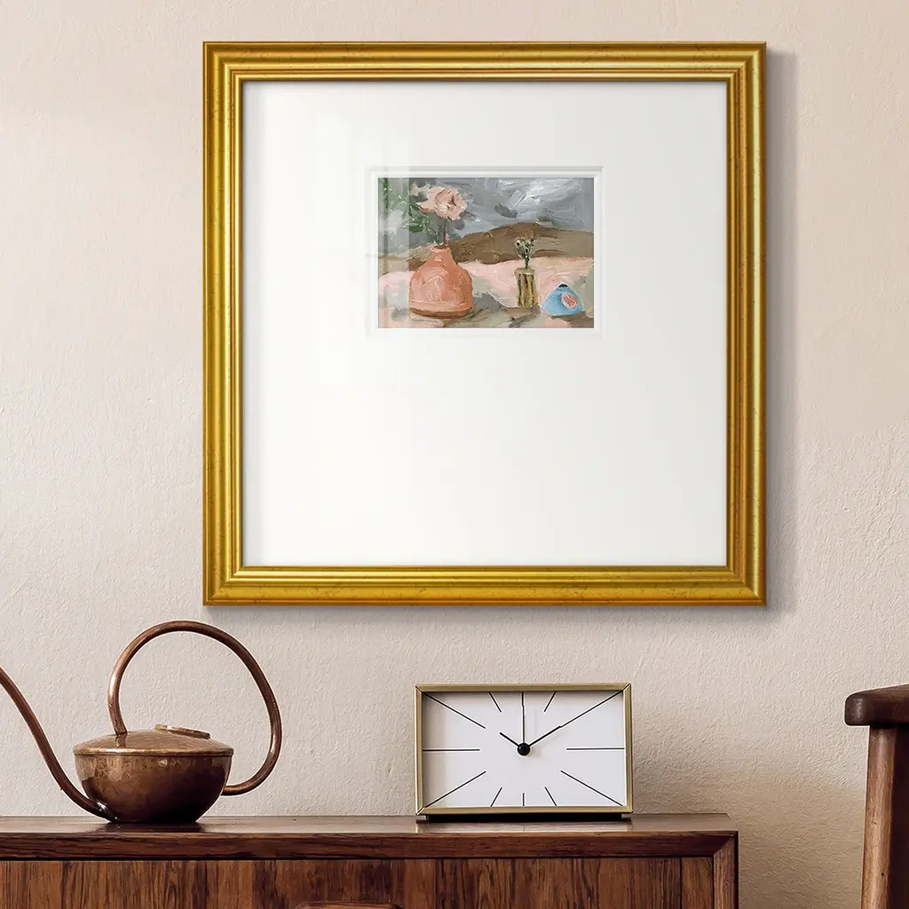 Vase of Pink Flowers IPremium Framed Print A framed cold pressed paper print featuring superior double matting and quality frame. 2 SIZES AVAILABLE 16''X16''' - Overall Size 20''X20''' - Overall Size Each piece is made to order. Each piece comes with hanging hardware. Made in the USA Ready to Hang Giclee Paper Print Plexiglass Beveled Matt Board Double Matte Board