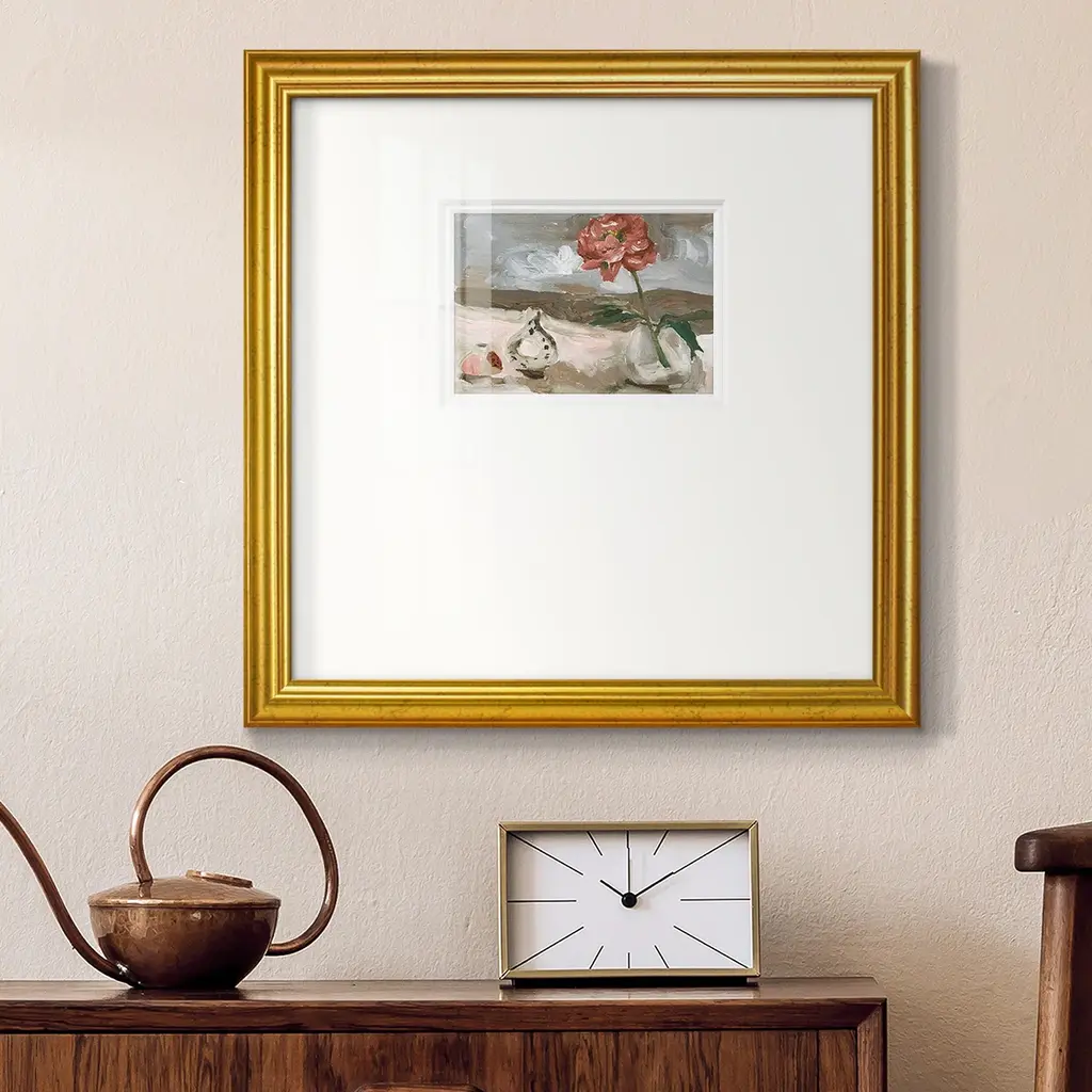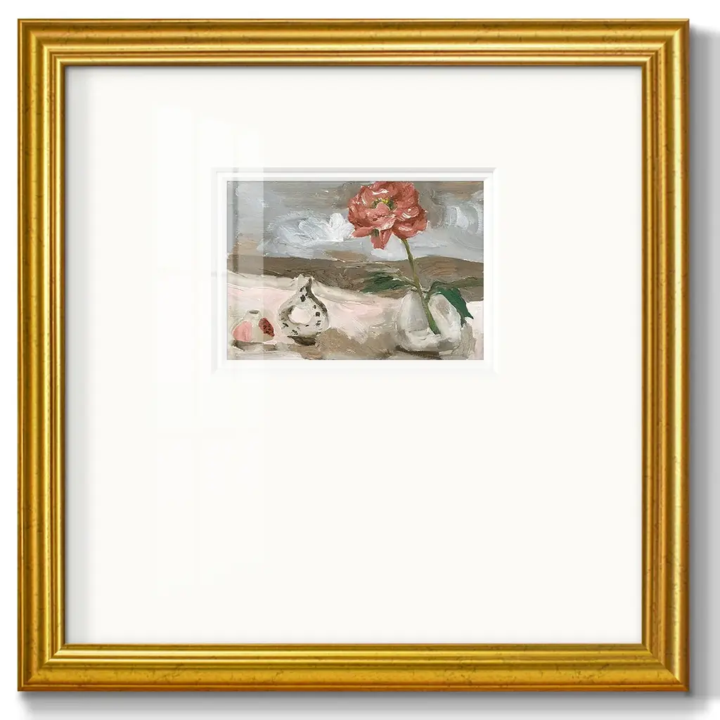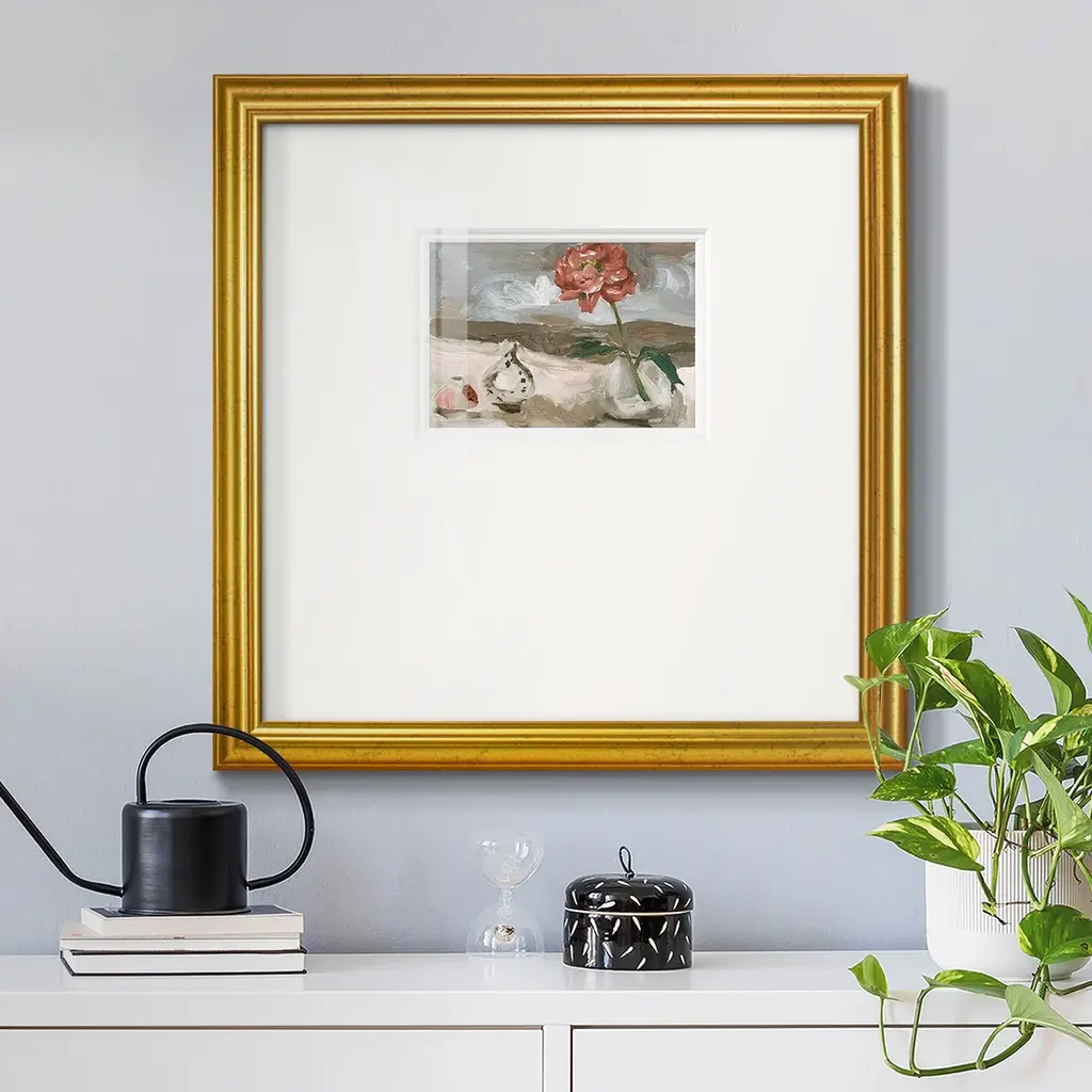 Vase of Pink Flowers IVPremium Framed Print A framed cold pressed paper print featuring superior double matting and quality frame. 2 SIZES AVAILABLE 16''X16''' - Overall Size 20''X20''' - Overall Size Each piece is made to order. Each piece comes with hanging hardware. Made in the USA Ready to Hang Giclee Paper Print Plexiglass Beveled Matt Board Double Matte Board