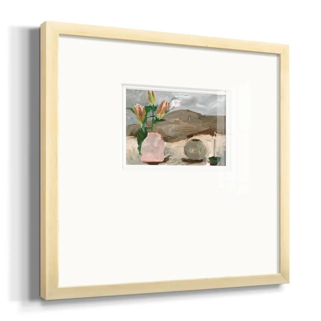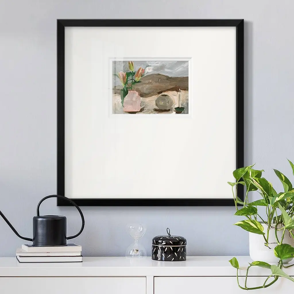 Vase of Pink Flowers VPremium Framed Print A framed cold pressed paper print featuring superior double matting and quality frame. 2 SIZES AVAILABLE 16''X16''' - Overall Size 20''X20''' - Overall Size Each piece is made to order. Each piece comes with hanging hardware. Made in the USA Ready to Hang Giclee Paper Print Plexiglass Beveled Matt Board Double Matte Board