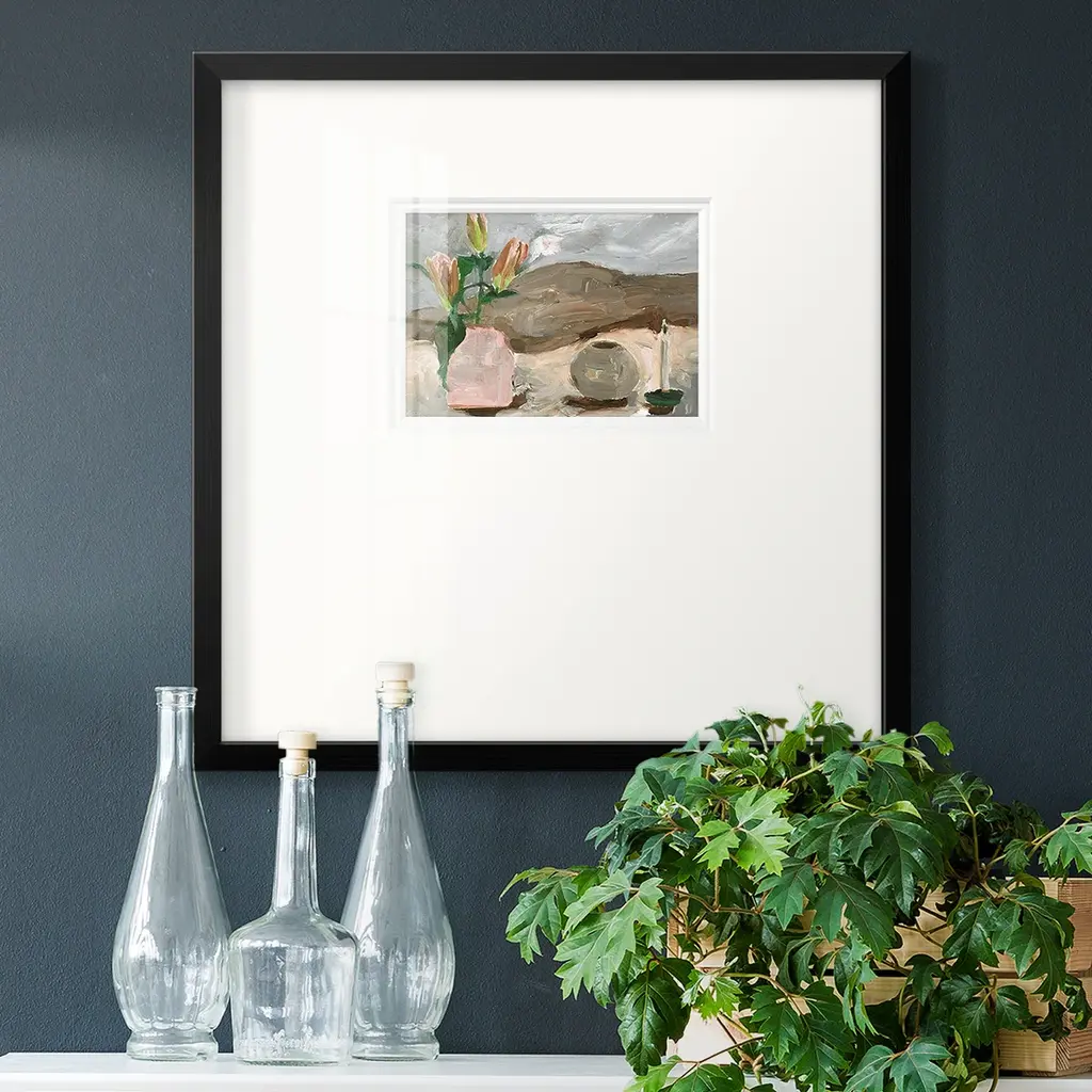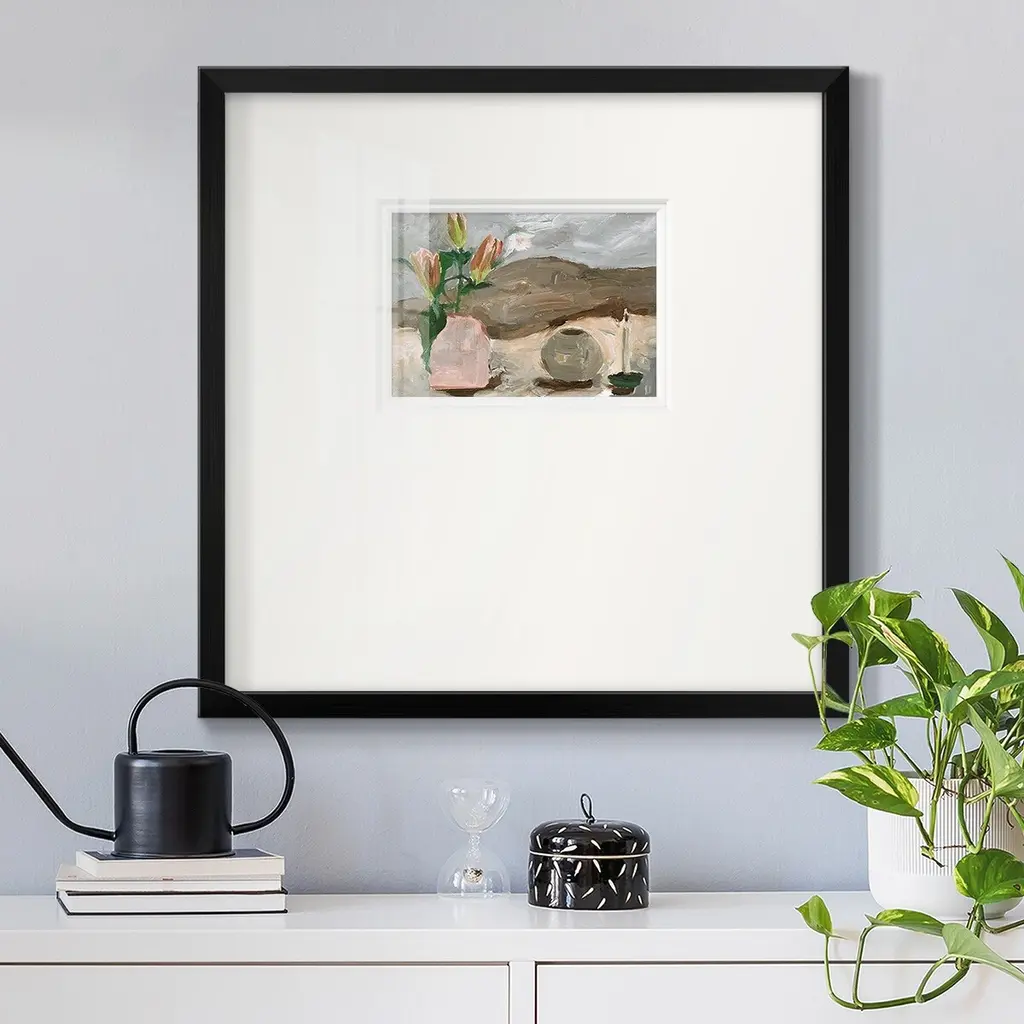 Vase of Pink Flowers VPremium Framed Print A framed cold pressed paper print featuring superior double matting and quality frame. 2 SIZES AVAILABLE 16''X16''' - Overall Size 20''X20''' - Overall Size Each piece is made to order. Each piece comes with hanging hardware. Made in the USA Ready to Hang Giclee Paper Print Plexiglass Beveled Matt Board Double Matte Board