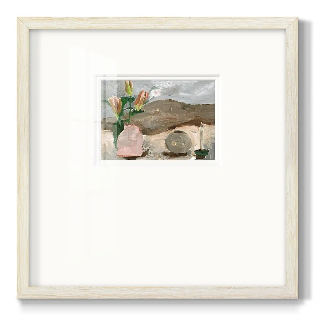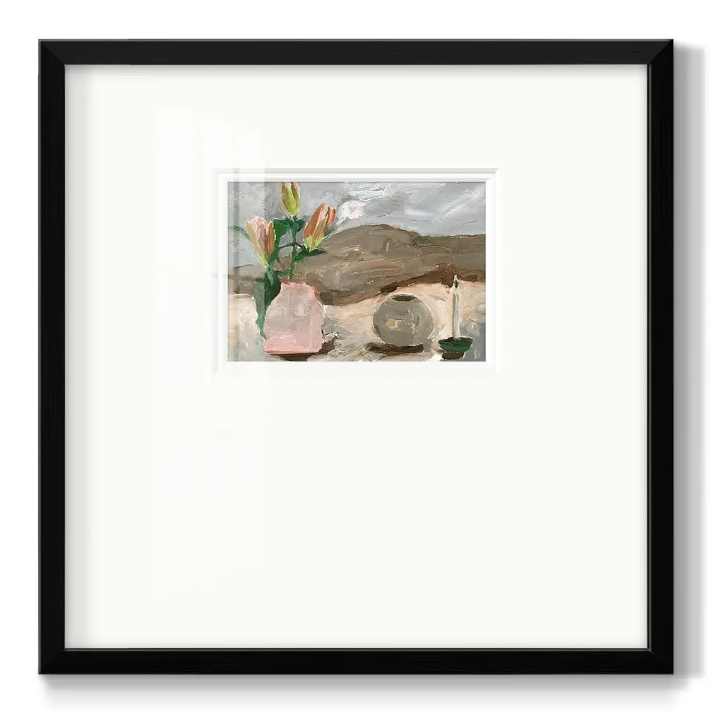 Vase of Pink Flowers VPremium Framed Print A framed cold pressed paper print featuring superior double matting and quality frame. 2 SIZES AVAILABLE 16''X16''' - Overall Size 20''X20''' - Overall Size Each piece is made to order. Each piece comes with hanging hardware. Made in the USA Ready to Hang Giclee Paper Print Plexiglass Beveled Matt Board Double Matte Board
