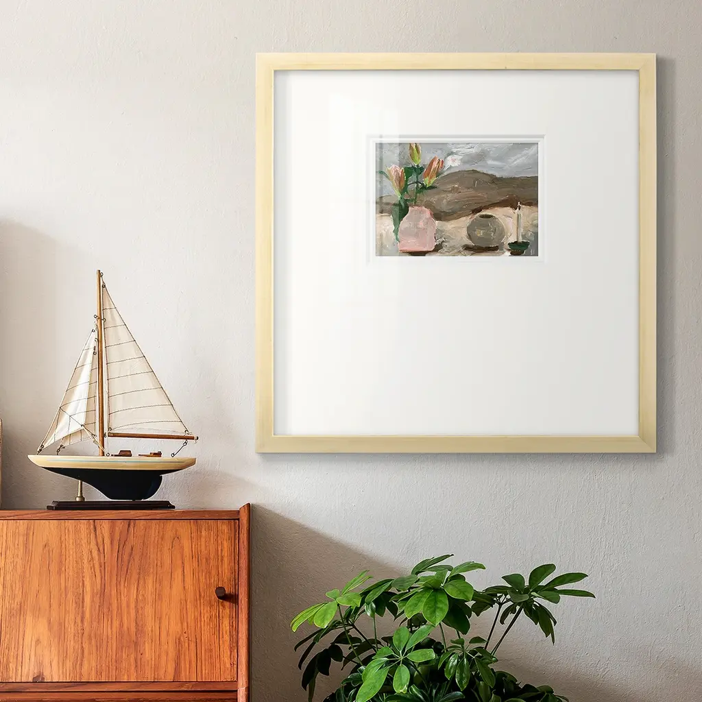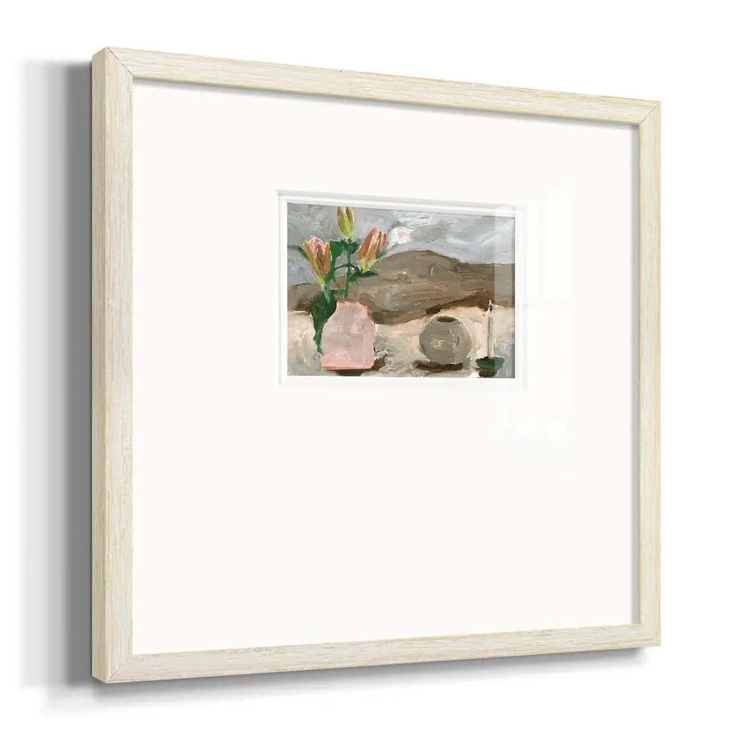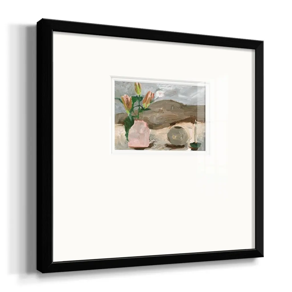 Vase of Pink Flowers VPremium Framed Print A framed cold pressed paper print featuring superior double matting and quality frame. 2 SIZES AVAILABLE 16''X16''' - Overall Size 20''X20''' - Overall Size Each piece is made to order. Each piece comes with hanging hardware. Made in the USA Ready to Hang Giclee Paper Print Plexiglass Beveled Matt Board Double Matte Board