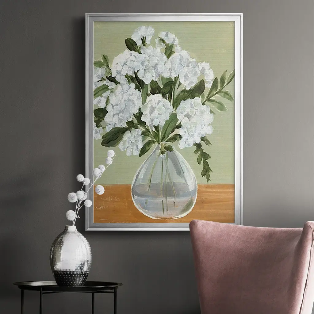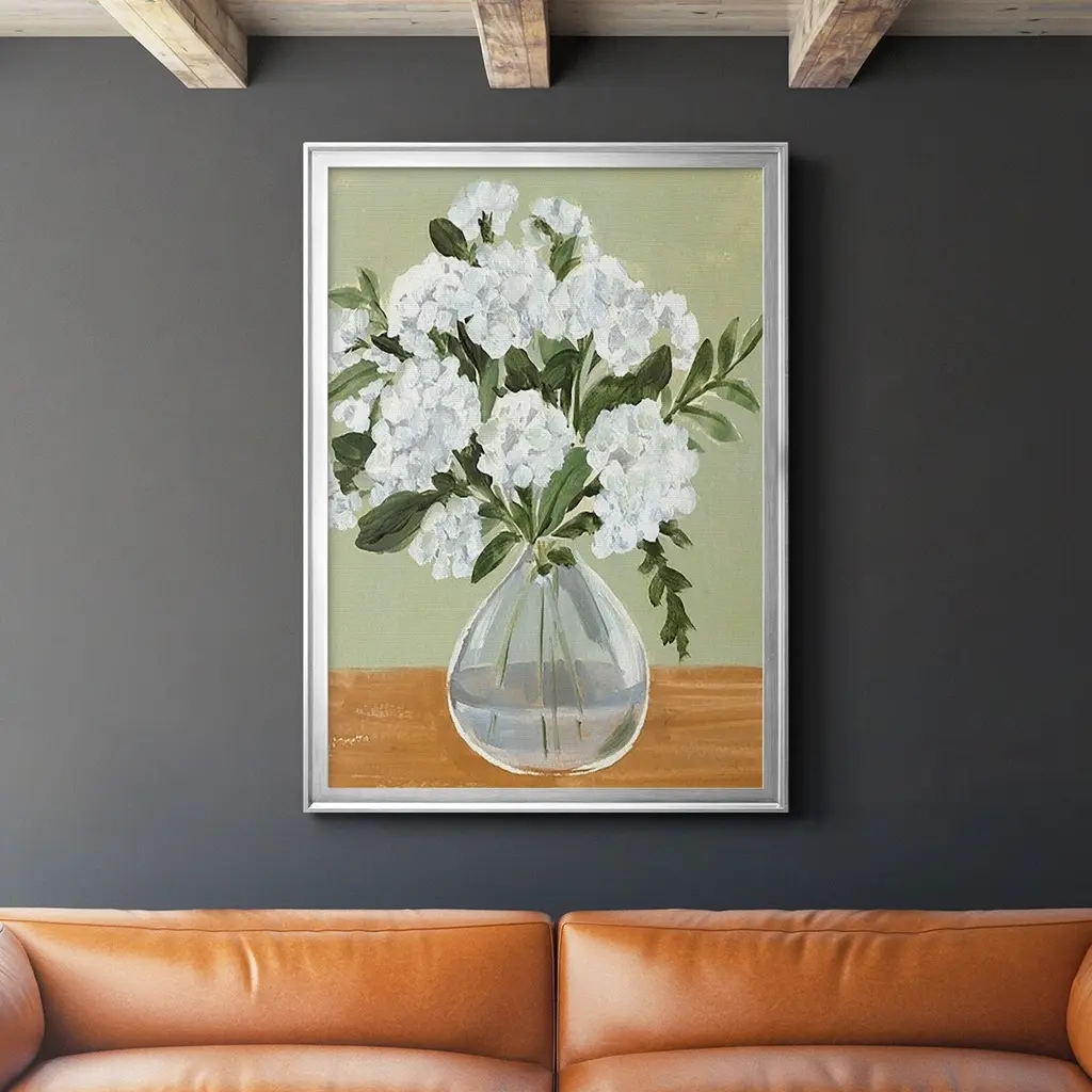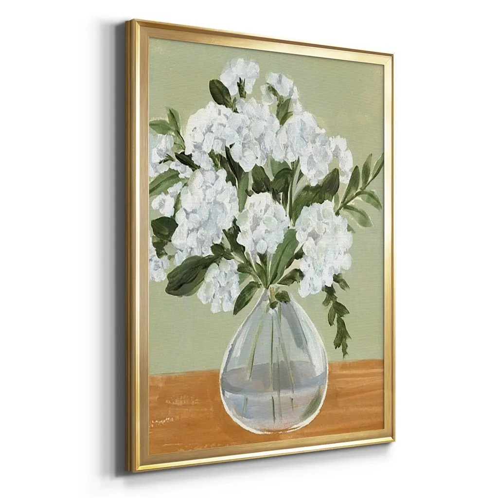 Vased Viburnum I Premium Framed Print - Ready to Hang A Premium Framed Print created to last. Framed in distressed wood and available in an array of sizes and colors Featuring a beveled a solid wood stretcher bar, each piece comes ready to hand 4 SIZES AVAILABLE 30.5''X42.5'' - Overall Size 26.5'X36.5'' - Overall Size 22.5''x30.5'' - Overall Size 18.5''x24.5'' - Overall Size Each piece is made to order. Each piece comes with hanging hardware. Made in the USA Ready to Hang