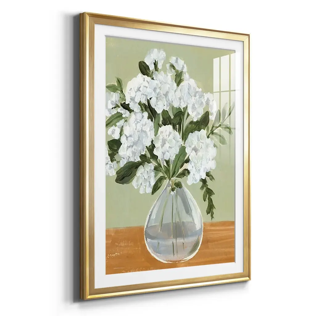 Vased Viburnum I Premium Framed Print - Ready to Hang A Premium Framed Print created to last. Framed in distressed wood and available in an array of sizes and colors Featuring a beveled a solid wood stretcher bar, each piece comes ready to hand 4 SIZES AVAILABLE 30.5''X42.5'' - Overall Size 26.5'X36.5'' - Overall Size 22.5''x30.5'' - Overall Size 18.5''x24.5'' - Overall Size Each piece is made to order. Each piece comes with hanging hardware. Made in the USA Ready to Hang Giclee Paper Print Acrylic Glass Beveled Matt Board