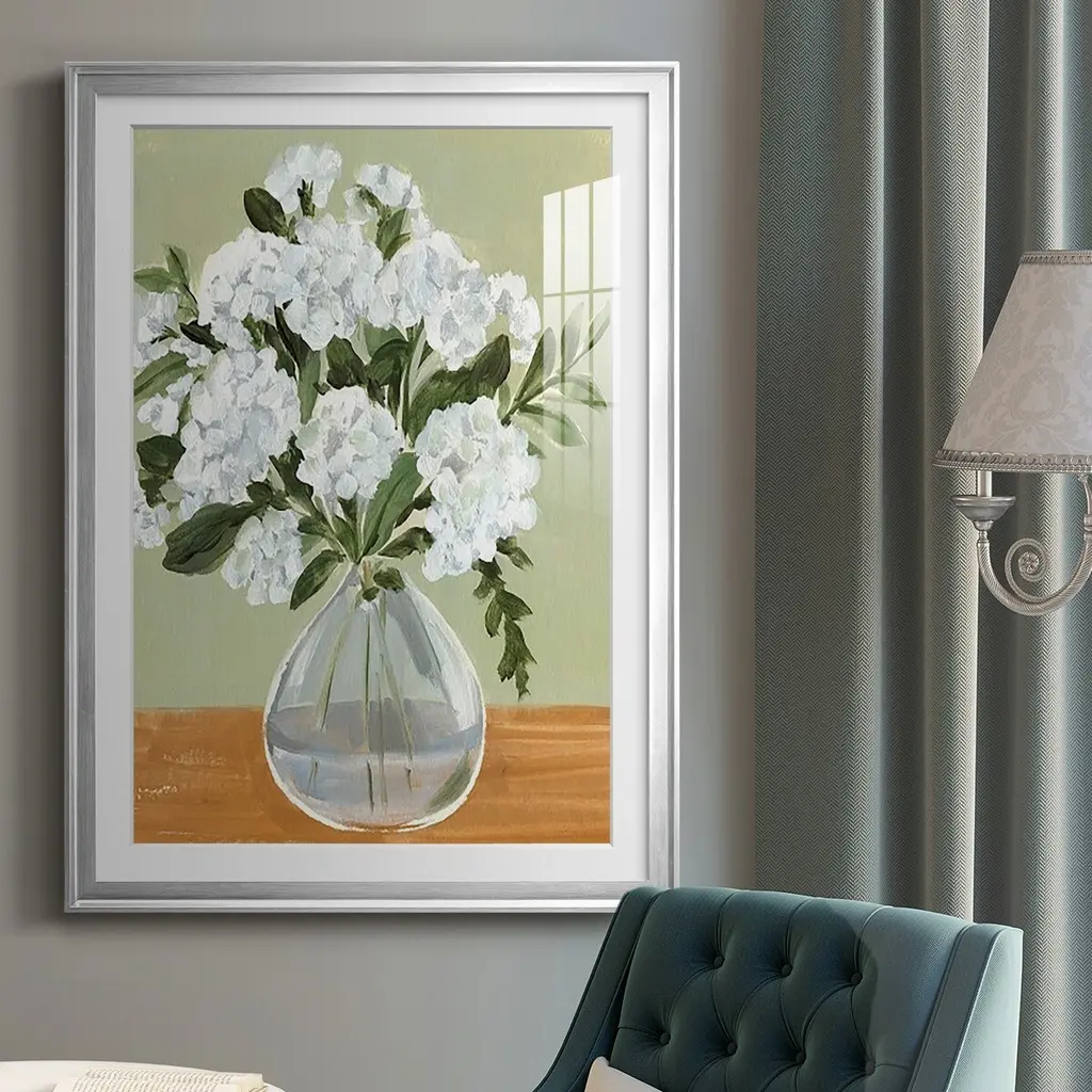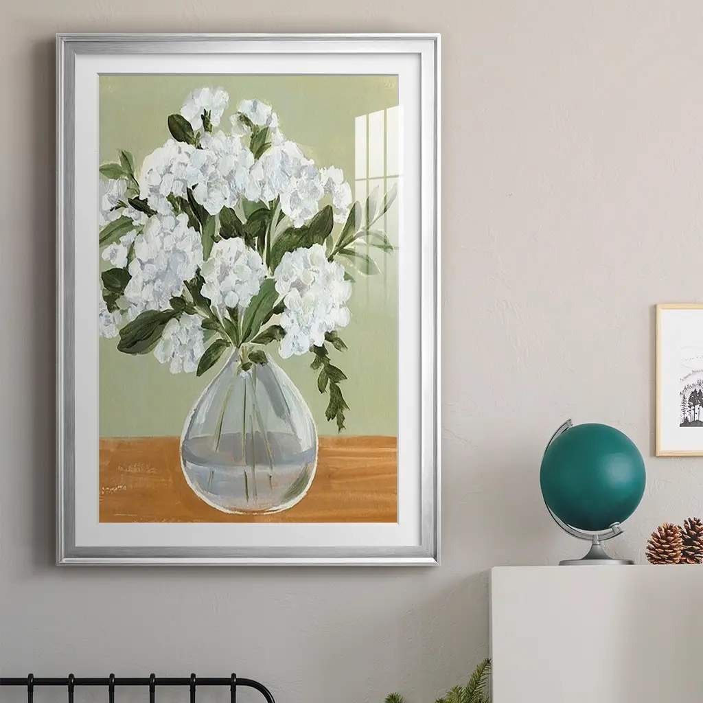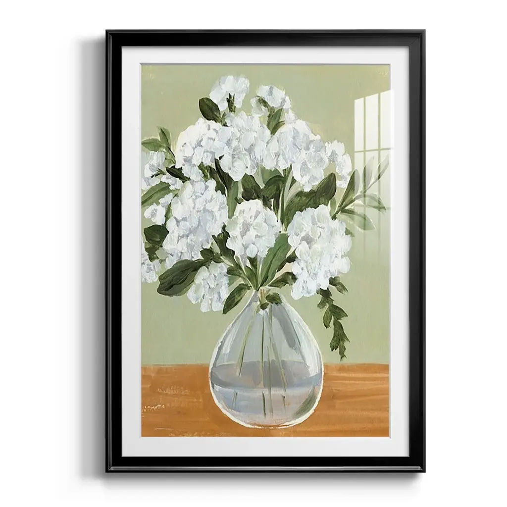 Vased Viburnum I Premium Framed Print - Ready to Hang A Premium Framed Print created to last. Framed in distressed wood and available in an array of sizes and colors Featuring a beveled a solid wood stretcher bar, each piece comes ready to hand 4 SIZES AVAILABLE 30.5''X42.5'' - Overall Size 26.5'X36.5'' - Overall Size 22.5''x30.5'' - Overall Size 18.5''x24.5'' - Overall Size Each piece is made to order. Each piece comes with hanging hardware. Made in the USA Ready to Hang Giclee Paper Print Acrylic Glass Beveled Matt Board