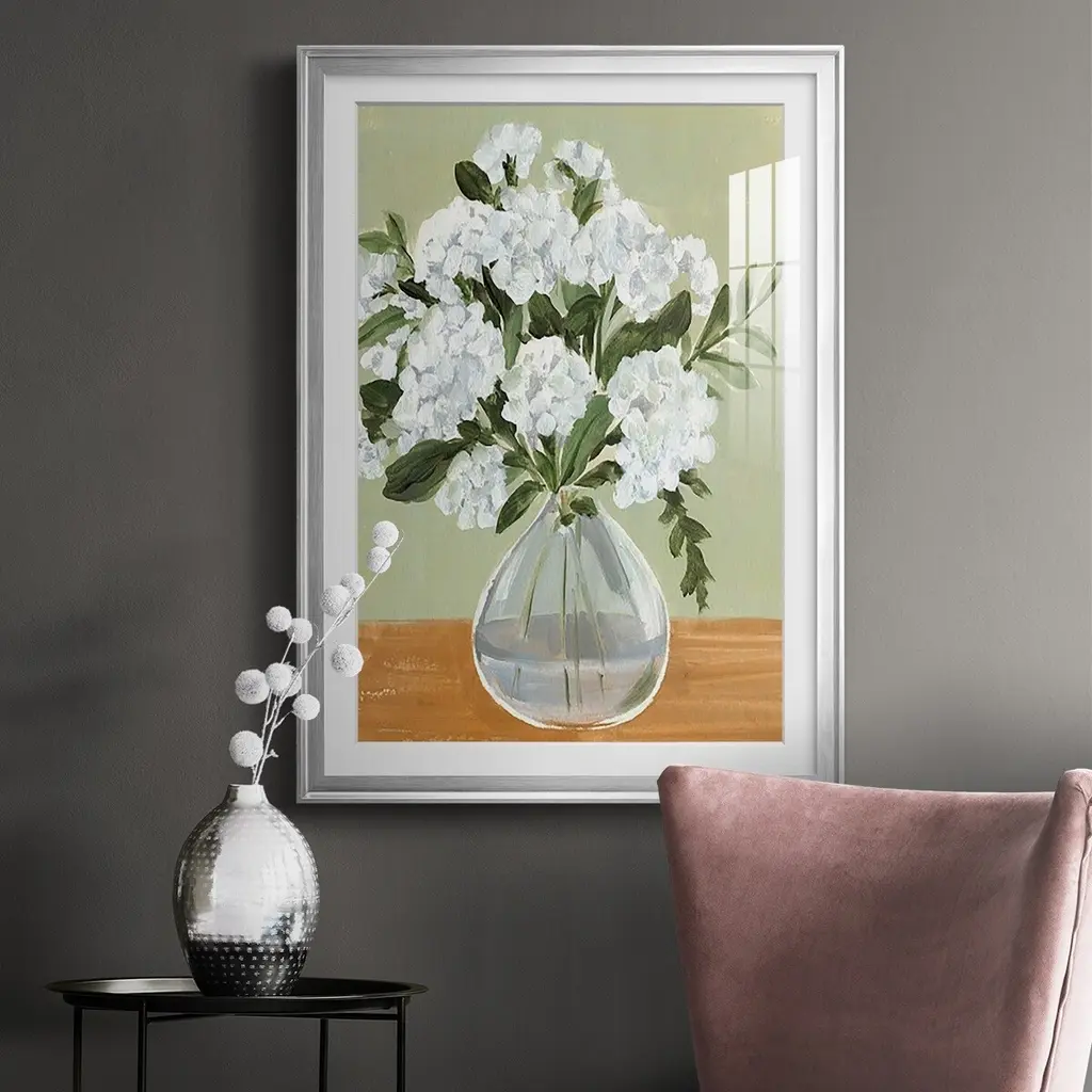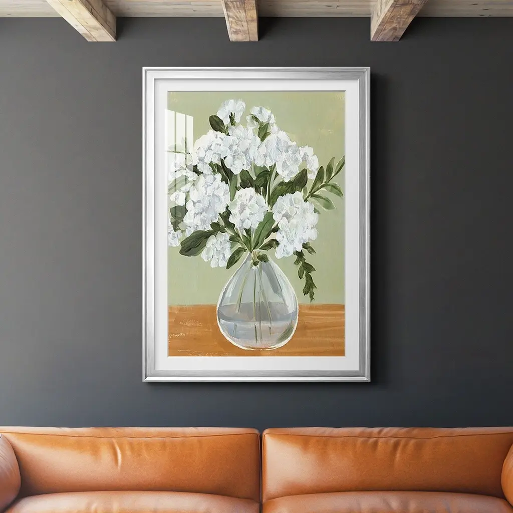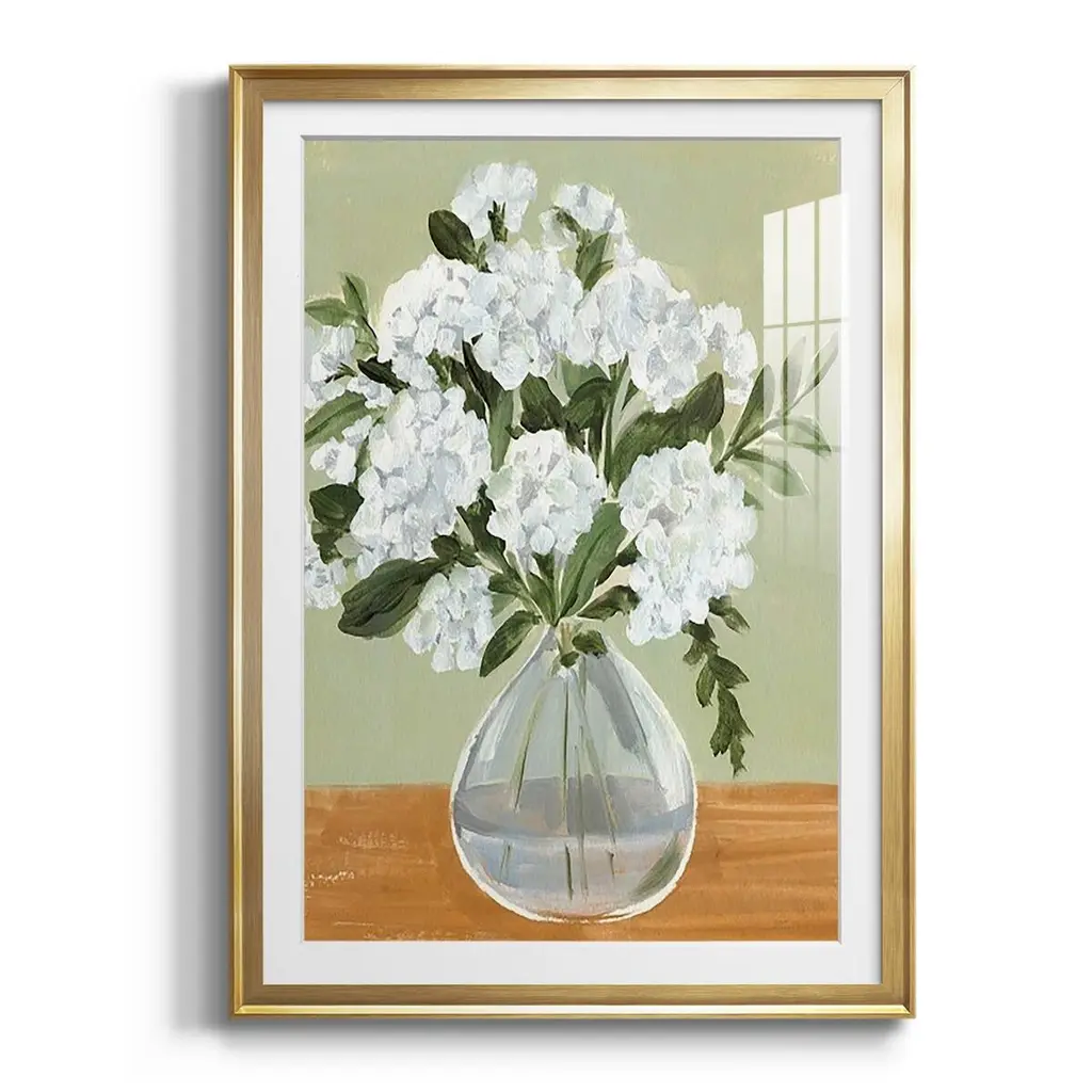 Vased Viburnum I Premium Framed Print - Ready to Hang A Premium Framed Print created to last. Framed in distressed wood and available in an array of sizes and colors Featuring a beveled a solid wood stretcher bar, each piece comes ready to hand 4 SIZES AVAILABLE 30.5''X42.5'' - Overall Size 26.5'X36.5'' - Overall Size 22.5''x30.5'' - Overall Size 18.5''x24.5'' - Overall Size Each piece is made to order. Each piece comes with hanging hardware. Made in the USA Ready to Hang Giclee Paper Print Acrylic Glass Beveled Matt Board