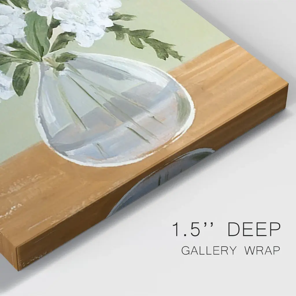 Vased Viburnum I Premium Gallery Wrapped Canvas - Ready to Hang A premium hand stretched gallery wrapped canvas print created to last. Featuring a beveled a solid wood stretcher bar, each piece comes ready to hand 6 SIZES AVAILABLE 8''X12'' - Overall Size 12''X18'' - Overall Size 18''X27'' - Overall Size 24''x36'' - Overall Size 32''x48'' - Overall Size 40''x60'' - Overall Size Each piece is made to order. Built to Last Each piece comes ready to hang Solid wood stretcher Fade and Water resistant Made domestically