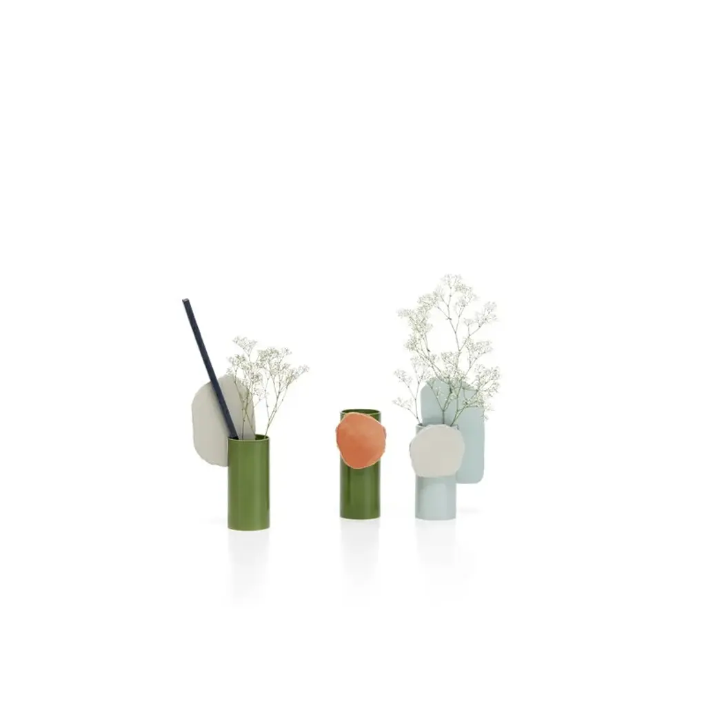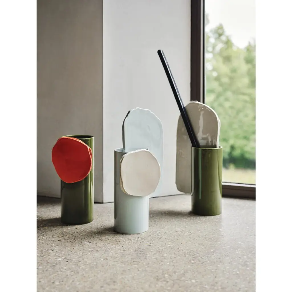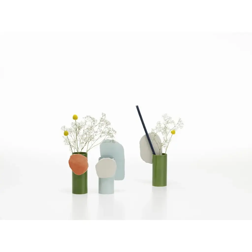 The Vitra Disque vase is part of the Vases Découpage collection, designed by Ronan and Erwan Bouroullec. The collection’s works invite you to take part in creating their final look: the vases in the collection can be decorated with clay tiles or rods, depending on the piece, to create your own poetic compositions. The Disque vase’s unique beauty is based on the contrast of its elements’ opposite colors.