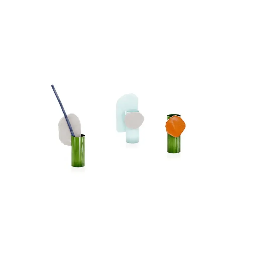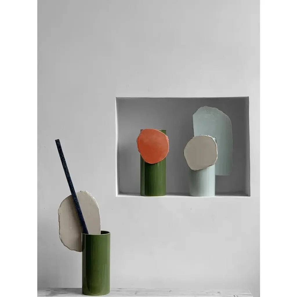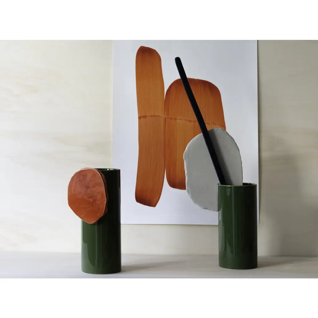 The Vitra Disque vase is part of the Vases Découpage collection, designed by Ronan and Erwan Bouroullec. The collection’s works invite you to take part in creating their final look: the vases in the collection can be decorated with clay tiles or rods, depending on the piece, to create your own poetic compositions. The Disque vase’s unique beauty is based on the contrast of its elements’ opposite colors.