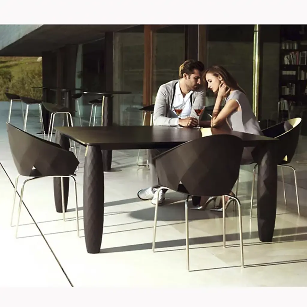 The Vases Stackable Chair, Set of 4 features a unique, diamond-cut quality that easily enhances any dining arrangement to a level of luxury. With a backrest that circles round to envelop the sitter, the chair's design and construction does well to make anyone look good while sitting in it. Give your space a lift with a touch of opulence.