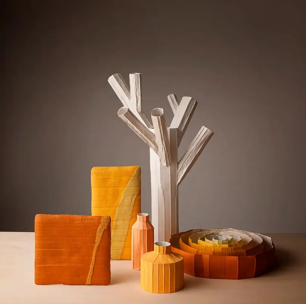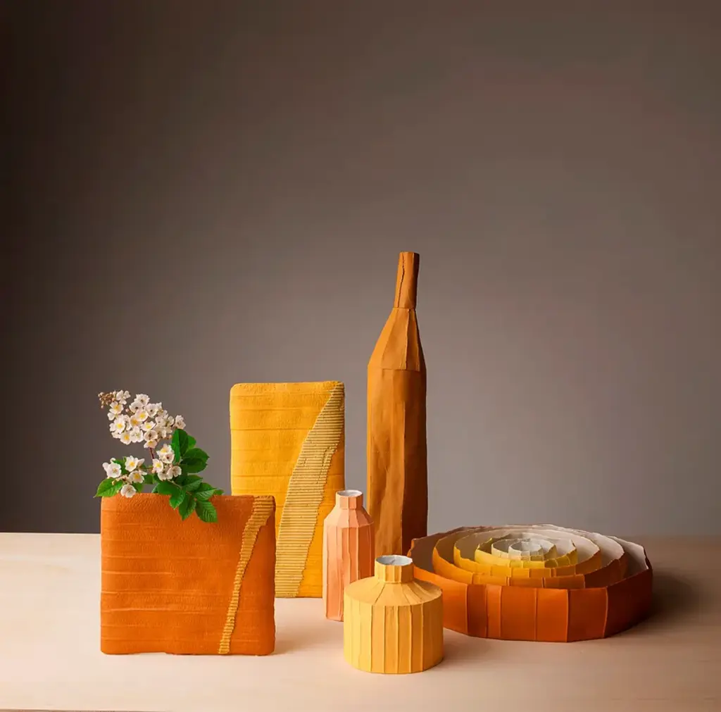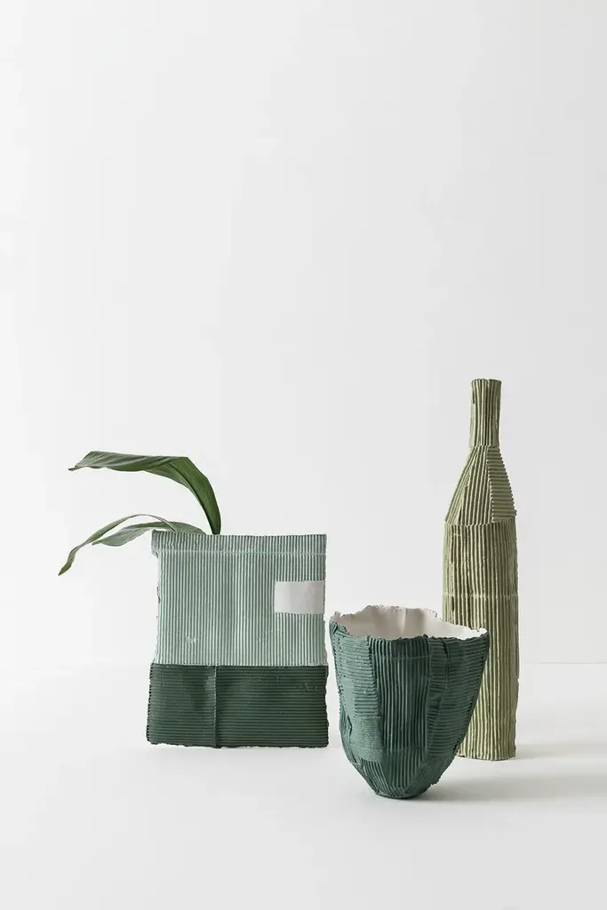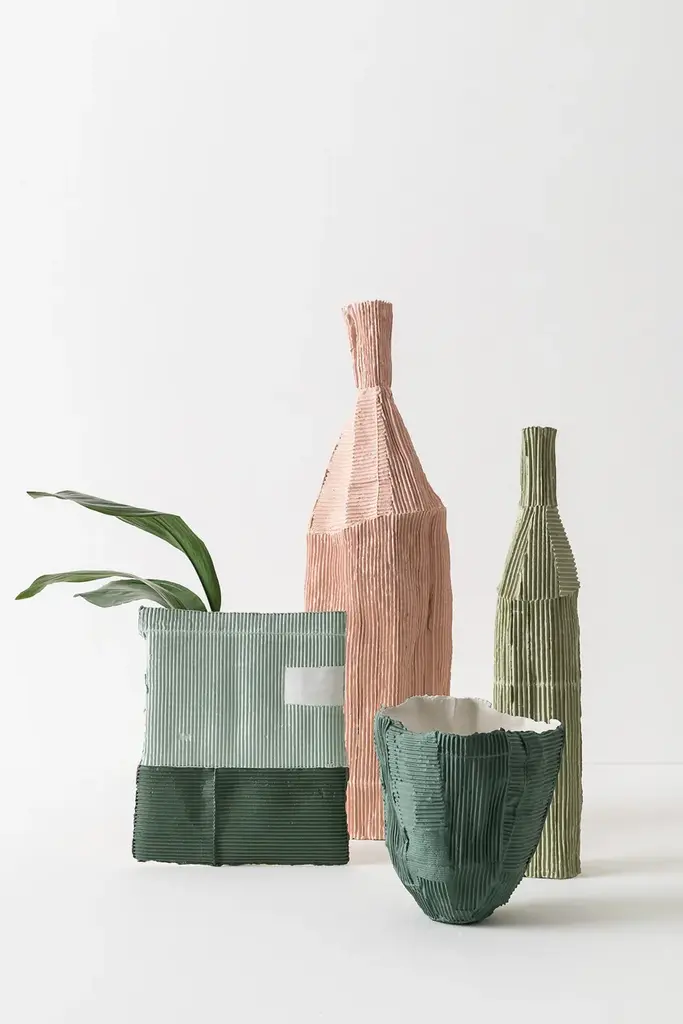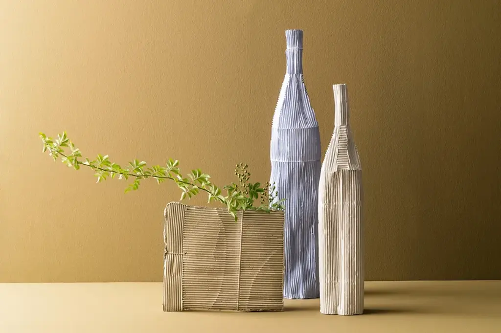 VASO A SORPRESA Quadro is a paperclay vase available in various colours and sizes.At first glance, these unpublished works by the Italian ceramic artist stand like slender clay slabs made with the paper clay technique.This technique makes the two-dimensional surface suggestive conferring depth and tactility.The varying orientation of the corrugated cardboard embedded in the clay, the absence of textures in other cases, and, in some works, the inserts of gold leaf, characterize these apparently two-dimensional works.Only by turning the object around, the third dimension, that transforms the slabs into a functional sculptural object, is revealed. Cylinders applied on the back of the slabs not only allow them to support themselves but take on the role of vase.