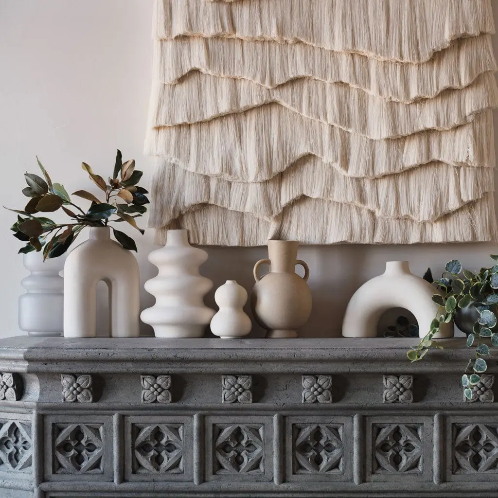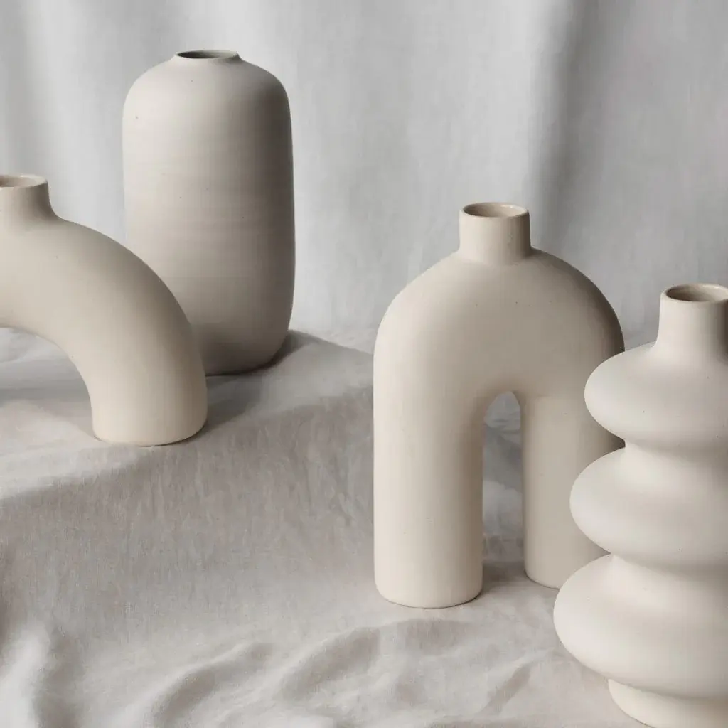 Minimal. Sculptural. Accent any room with the eye-catching appeal of this extraordinary ceramic vase. A sculptural piece that shines in any space, this ceramic vase forms a stunning arch with a slightly-textured white matte finish. A natural addition to your side table or shelves, this vase can be styled solo or as a set. Handcrafted in a workshop just outside of Delhi, India, each piece is made start-to-finish in a fair trade environment. Note: Glazed on the inside, you can style this vase with or without water.
