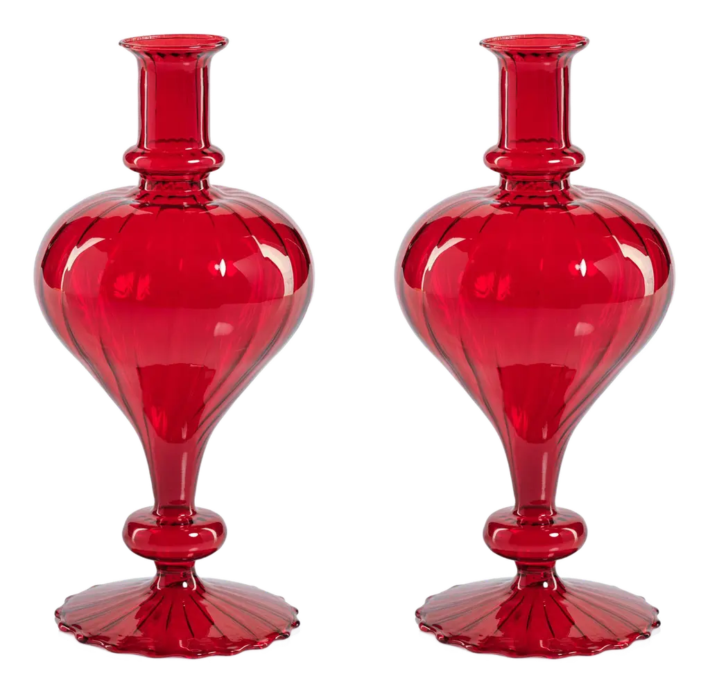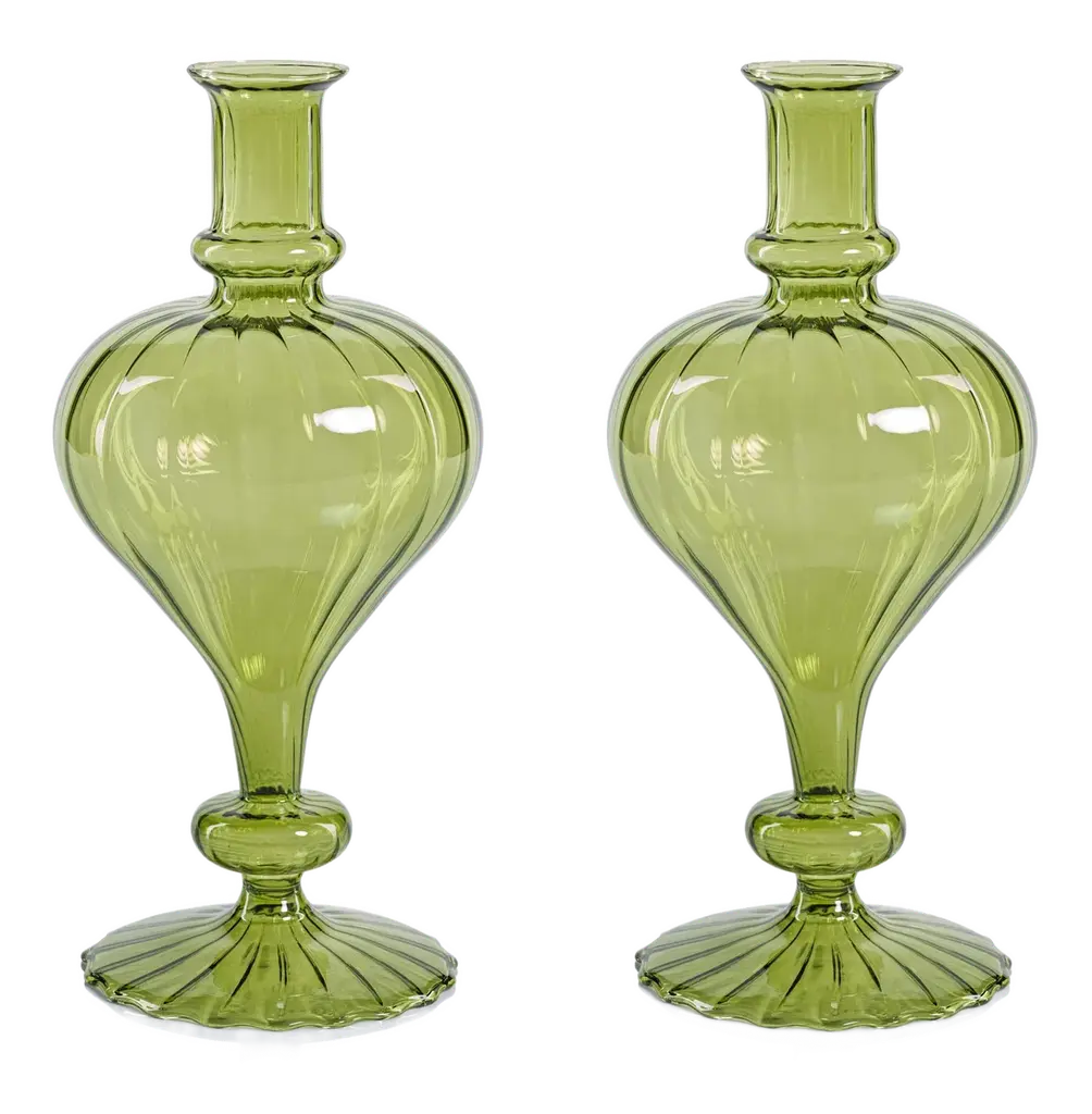 Made of glass, this set of 2 footed vases are a quaint touch to your home. Its exquisite craftsmanship and eye-catching design make for a stunning conversation piece. The combination of glass construction and a stylish, spiral design makes this dining table centerpiece look like a piece of art. Style with small flowers or simply leave them be adorning a shelf...excellent choice for a contemporary themed setting. Enhanced with a swirl pattern. Set of 2 footed vases of the same size. Has a beautiful silhouette. Looks great as individual pieces or when displayed together Fill with small bouquets of fresh-cut flowers to brighten up your space.