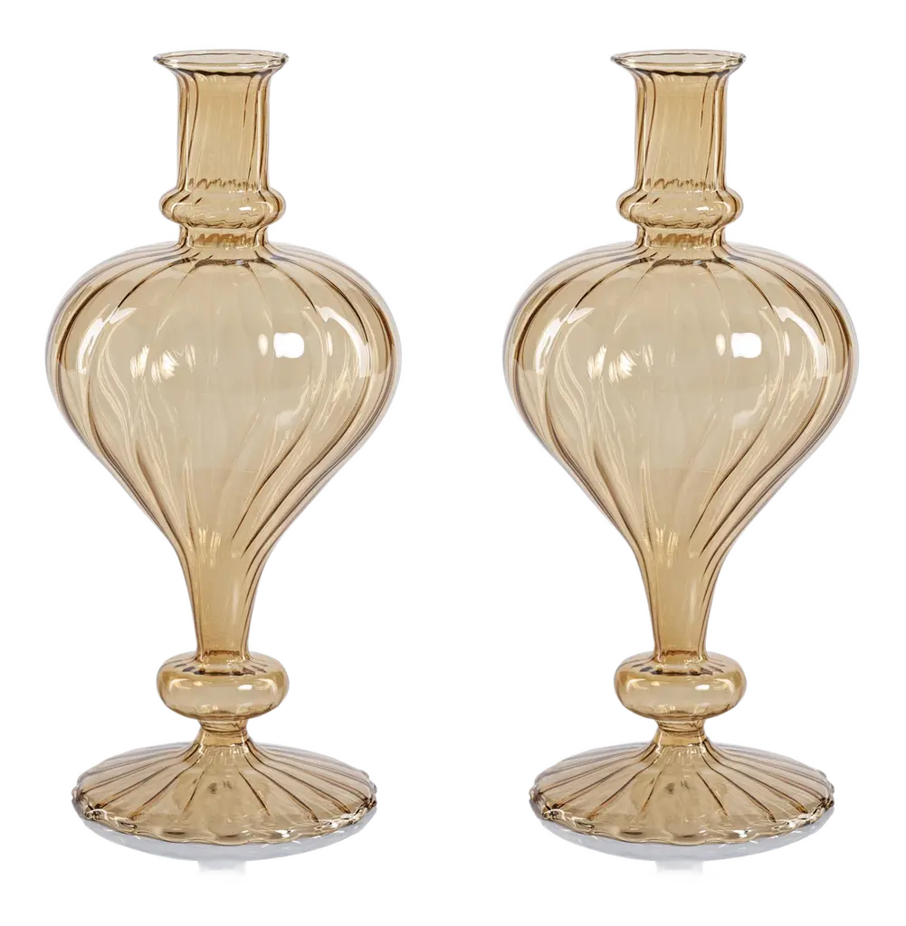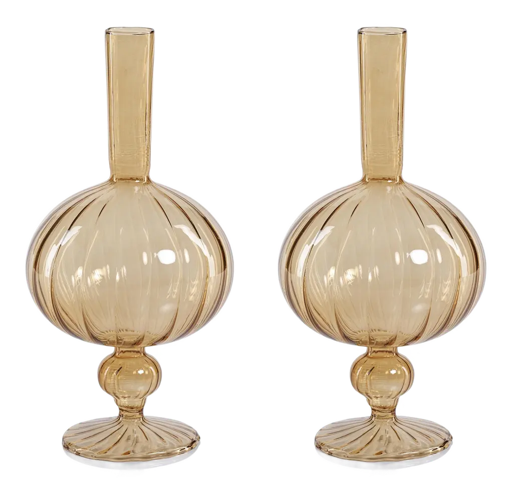 Vellum 2-Piece Set Small Light Amber Spiral Glass Vases, Turnip Shape