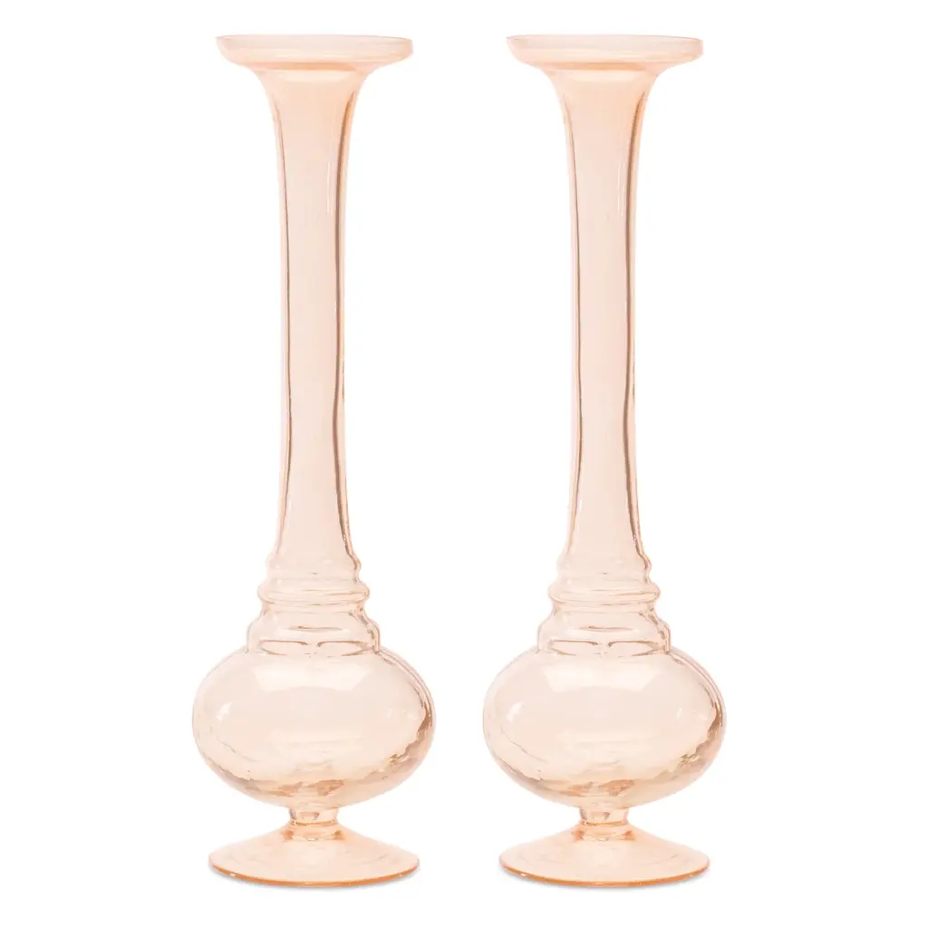 Made of glass, this set of 2 footed vases are a quaint touch to your home. Its exquisite craftsmanship and eye-catching design make for a stunning conversation piece. The combination of glass construction and a stylish, spiral design makes this dining table centerpiece look like a piece of art. Style with small flowers or simply leave them be adorning a shelf...excellent choice for a contemporary themed setting. Enhanced with a swirl pattern. Set of 2 footed vases of the same size. Has a beautiful silhouette. Looks great as individual pieces or when displayed together Fill with small bouquets of fresh-cut flowers to brighten up your space.