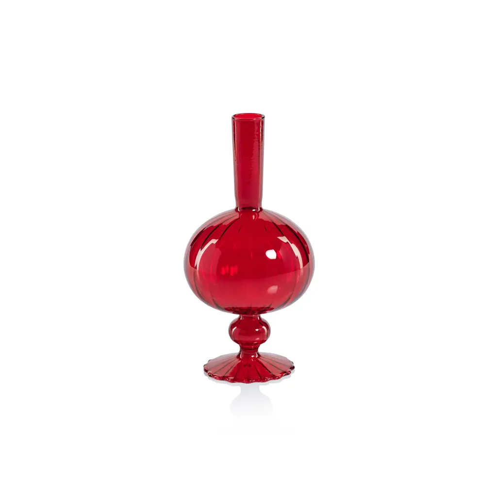 Vellum 2-Piece Set Small Red Spiral Glass Vases, Onion Shape