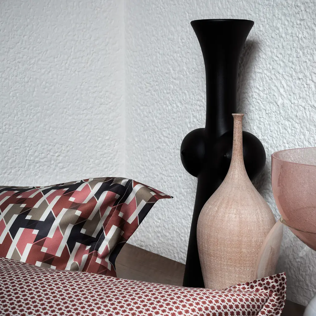 Iconic pieces from a historic Italian design brand. This handcrafted white clay vase features a smooth cast form with a matte black glaze finish, showcasing elegance and timeless design. A refined expression of craftsmanship and style. Design by Ambrogio Pozzi.