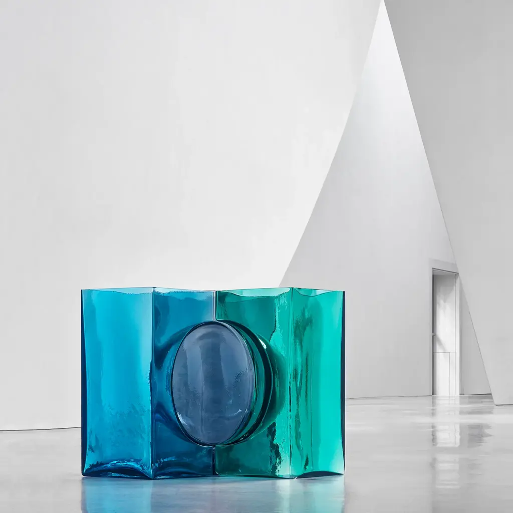 Discover the ultimate art piece with Ando Cosmos. Lim Crafted by Tadao Ando, this limited edition sculpture showcases a sophisticated design that symbolizes "The Order of Space". The intricate use of Venetian glass adds a touch of luxury to this exquisite set of three elements, leaving the viewer to imagine the missing piece of the composition. Elevate your space with this exclusive masterpiece.