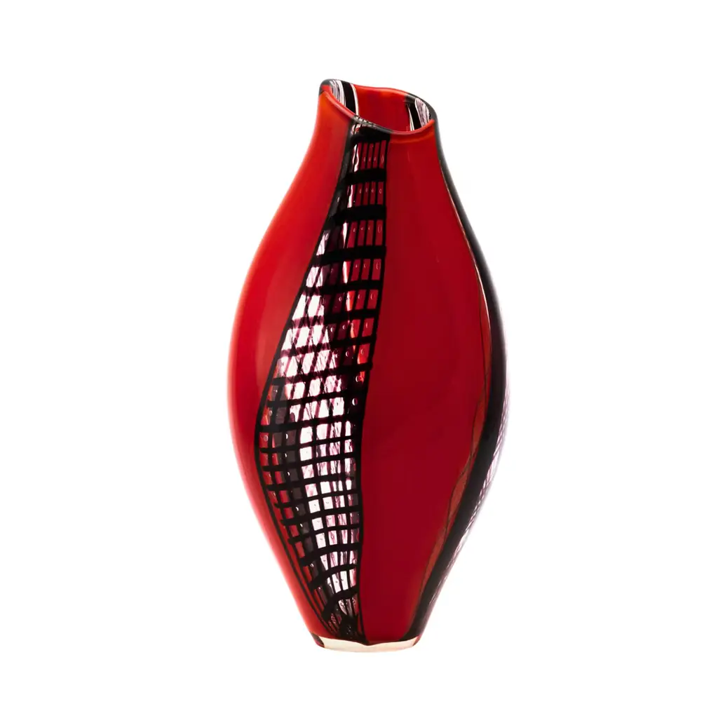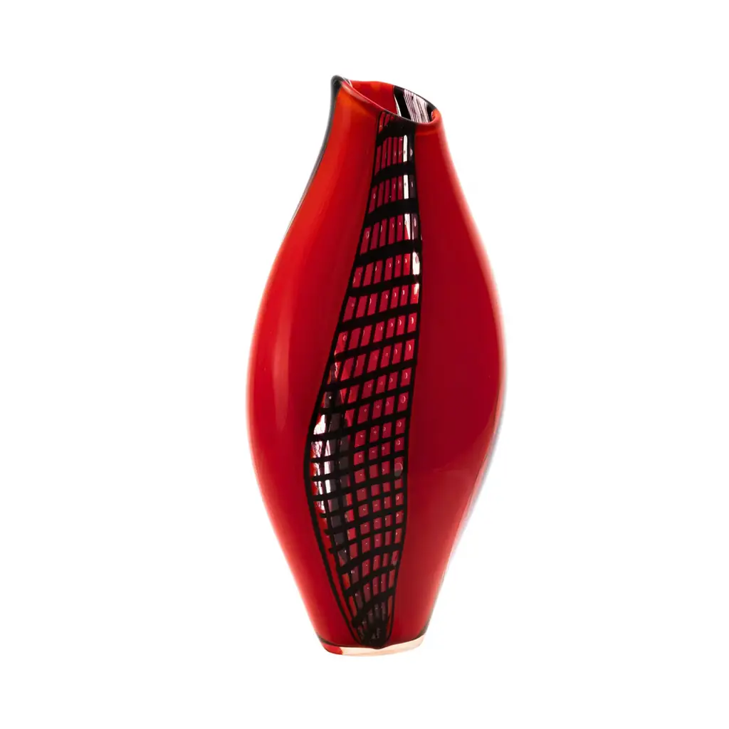 A singular masterpiece crafted of mouth-blown glass, this bud-like vase strikes with its vibrant interplays between clear contours and ornate decorative motifs. The spiral and reticular inserts - achieved following the "Zanfirico" technique - add to aventurine and filigree details contributing to the vase's unique artistic impact. Warranty and authenticity certificates are included with purchase.