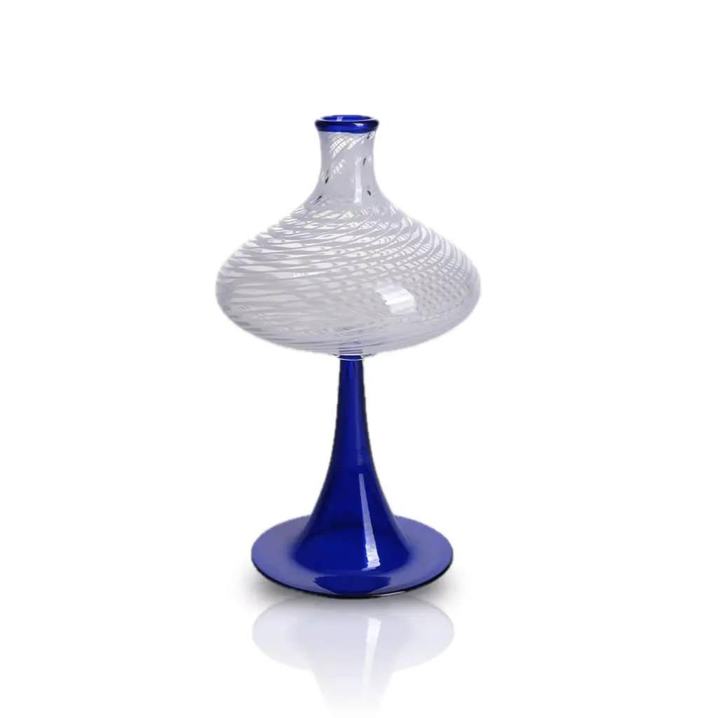 Flaunting an iconic Art Nouveau silhouette, this Murano masterpiece was designed in 1921 by Vittorio Zecchin, Venini's first artistic director. Inspired by the sumptuous colors in Renaissance painter Paolo Veronese's work, the superb sapphire blue mouthblown glass silhouette is highlighted by the vase's exquisitely curved shape and footed base, embellished by a clear crystal sphere. A captivating objet d'art for display in a modern or classic interior.