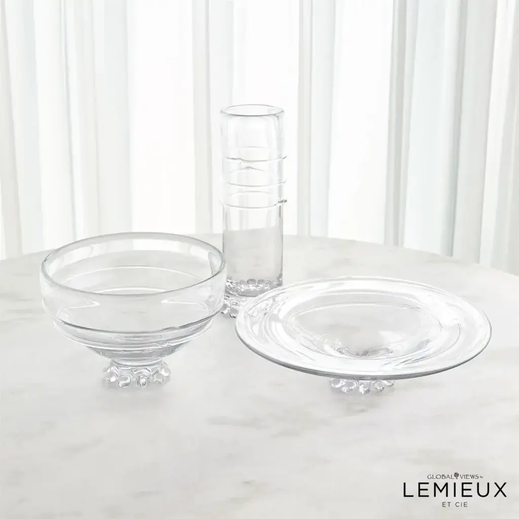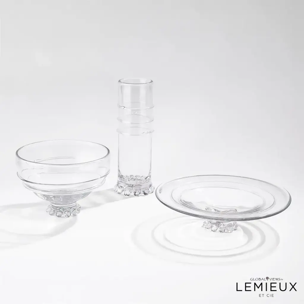 The Verre Lisse Collection captivates with its delicate and considered design, exuding quality and impeccable craftmanship effortlessly enhancing any tabletop or display. Crafted with meticulous precision, the collection's transparent beauty allows for an exquisite play of light and reflection. With versatile and graceful form, the bowl, plate, and vase are the perfect centerpieces, creating a harmonious blend of design and practicality. From a fashion forward perspective, Global Views offers accessories, furniture, statement lighting, and an assortment of rugs and mirrors to add beauty and joy to your home.