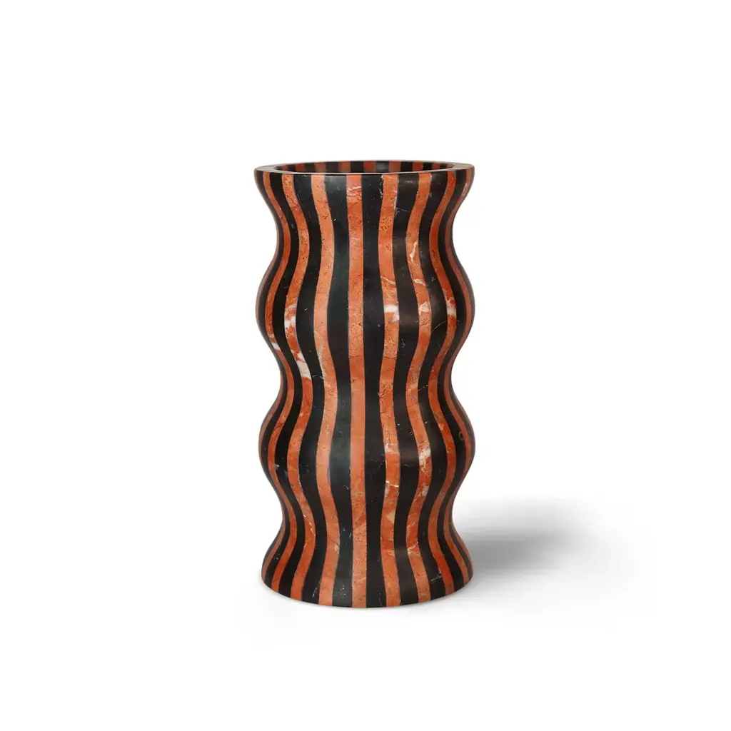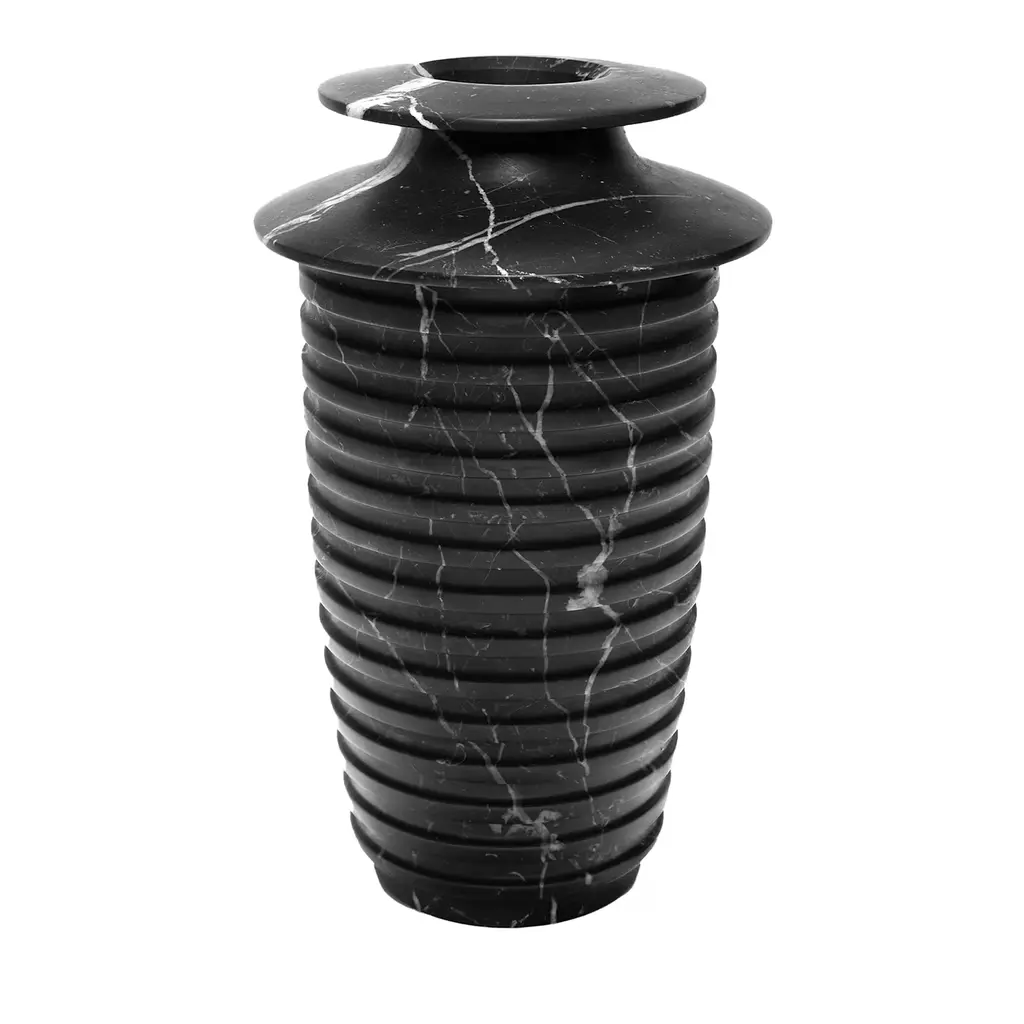 A tribute to the land where it is made as the result of the highest craftsmanship. Known for its marble quarries, its art ateliers, and its fashionable riviera resorts, Versilia is the sum of the Italian lifestyle. Versilia vase features a fine feminine and sensual shape. The most intense black Marquinia marble and the purest red Rosso Francia marble are combined to create an unmistakable black and white pattern. Versilia is a unique decorative object as well as a functional vase.
