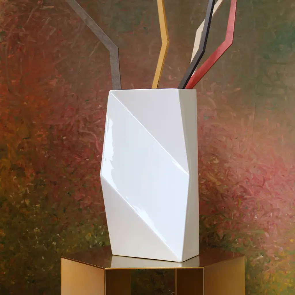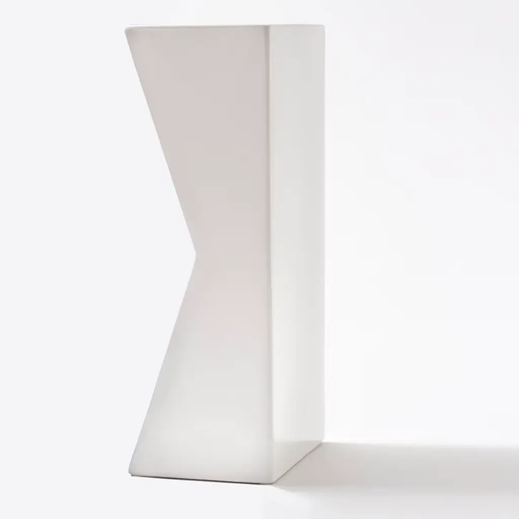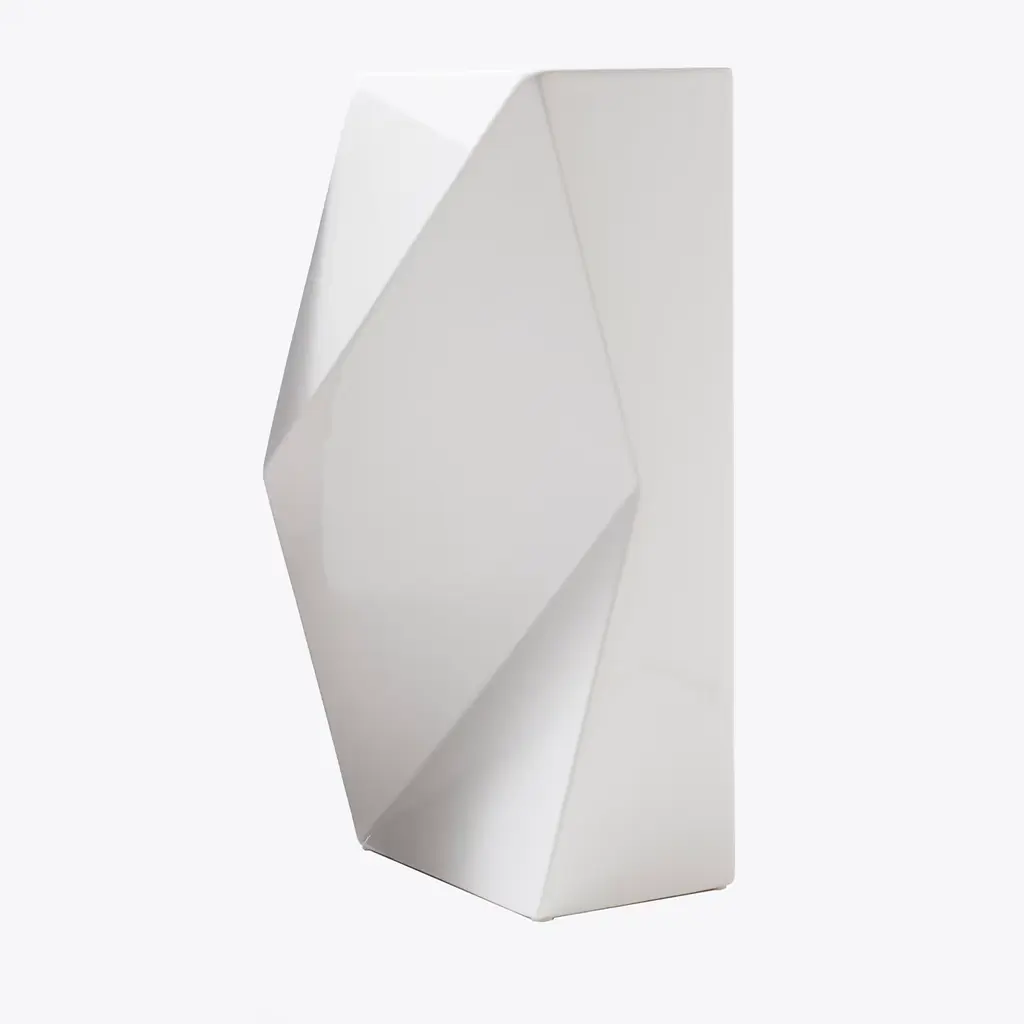 Showcasing a different silhouette based on the standpoint of the viewer, this sculptural vase is a stupendously shaped ceramic prism whose pure and clean essence is further enhanced with a polished white finish. Designed by artist Antonio Saporito, it can be used as a flower vase or simple decorative object. The Verso A Vase can be paired with Verso B Vase.