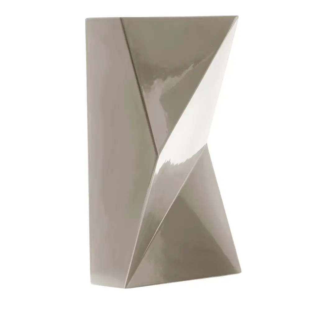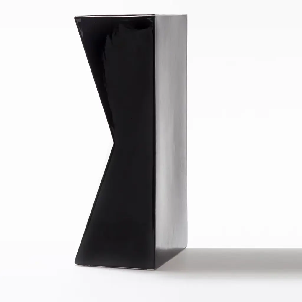Used as a flower vase or showcased as a decorative sculpture, this piece by Antonio Saporito will be a sublime addition to a personal collection of art and design oeuvres. Available in different shades, its ceramic silhouette is lacquered in a polished black tone of timeless versatility. The clean shape resembles a sharply cut prism for a bold visual impact. The Verso B Vase can be paired with Verso A Vase.