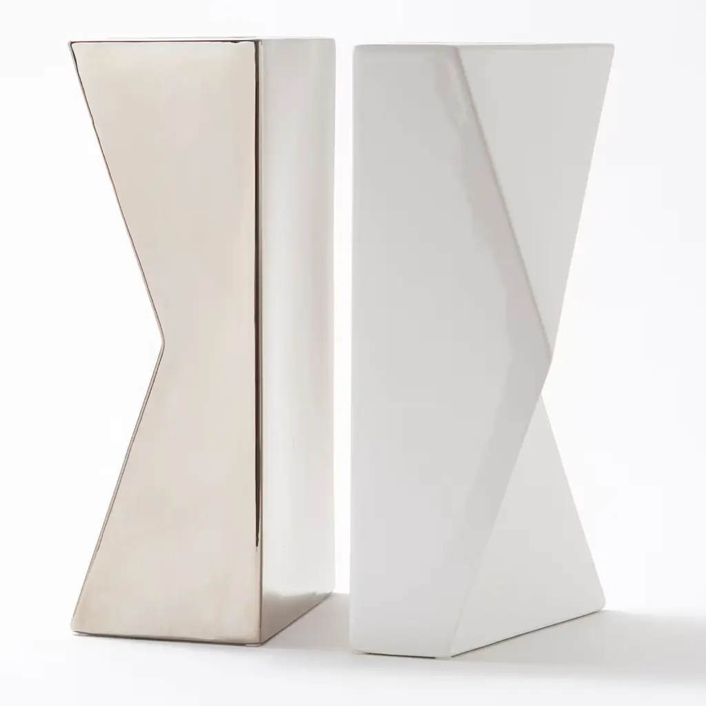 Verso Set Of 2 Platinum And White Vases By Antonio Saporito
