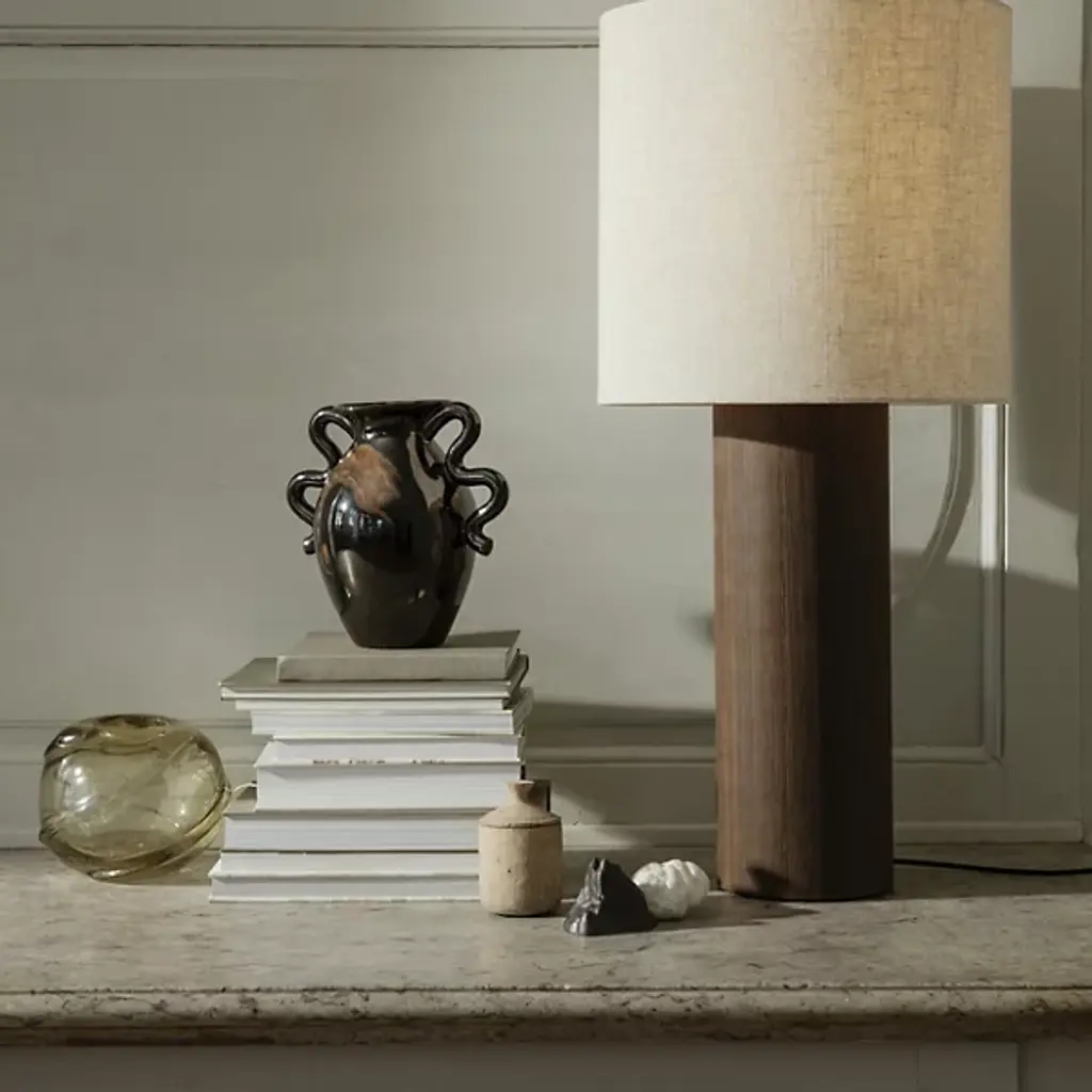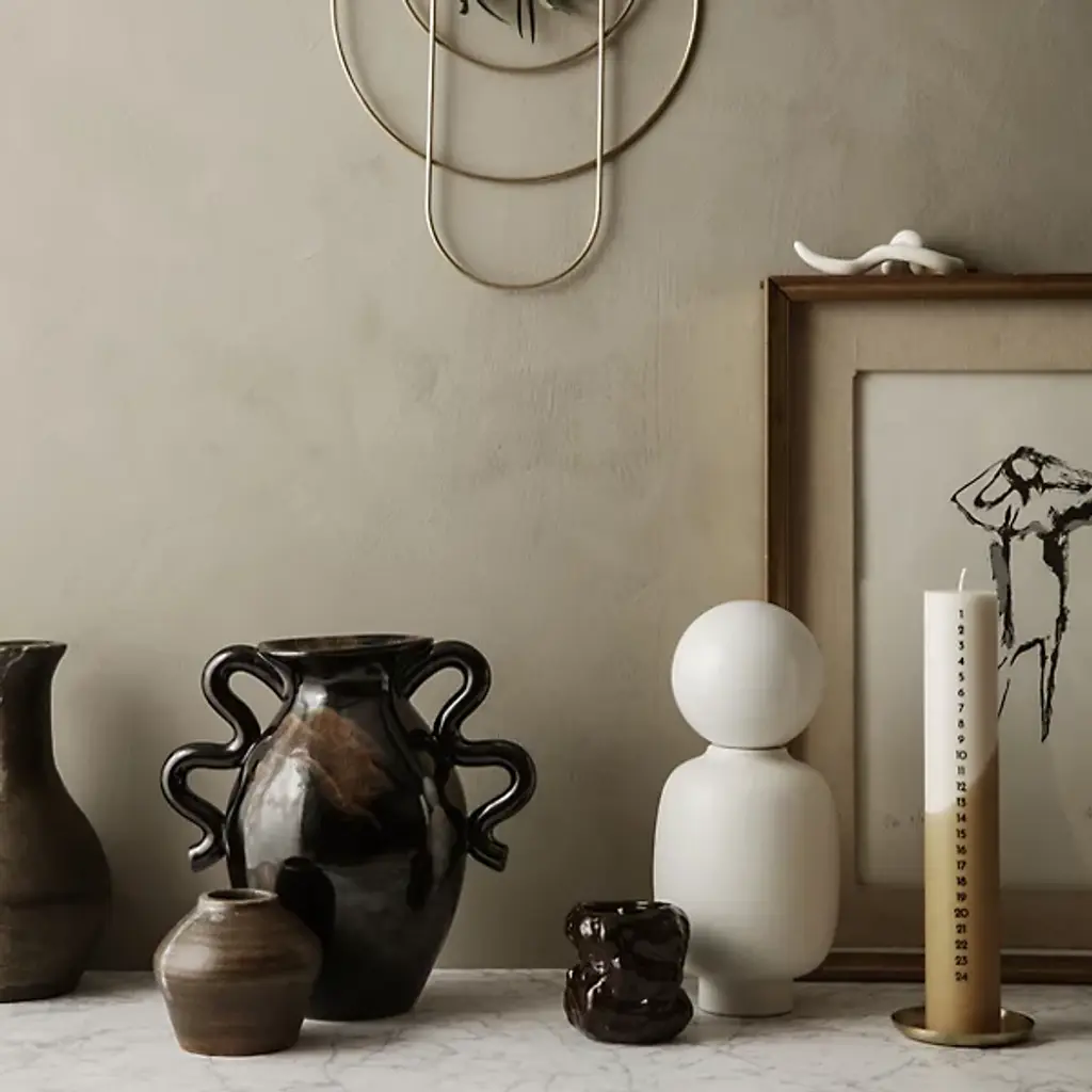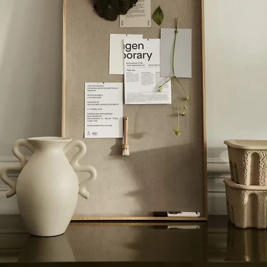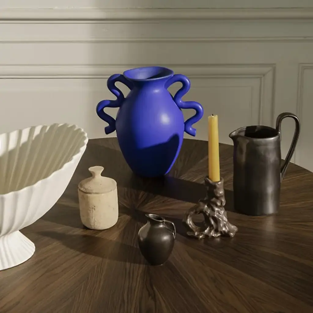 The Verso Table Vase from Ferm LIVING draws inspiration from classic pottery design. Distinctive, artfully arcing handles complement its irregular, curving form. These modern accents infuse a direct, contemporary twist into the vase's otherwise vintage design. Remarkable, whether filled with flowers or displayed on its own as an art piece, it artfully showcases classic and transitional styles, making it a versatile addition to a variety of home decor plans.
