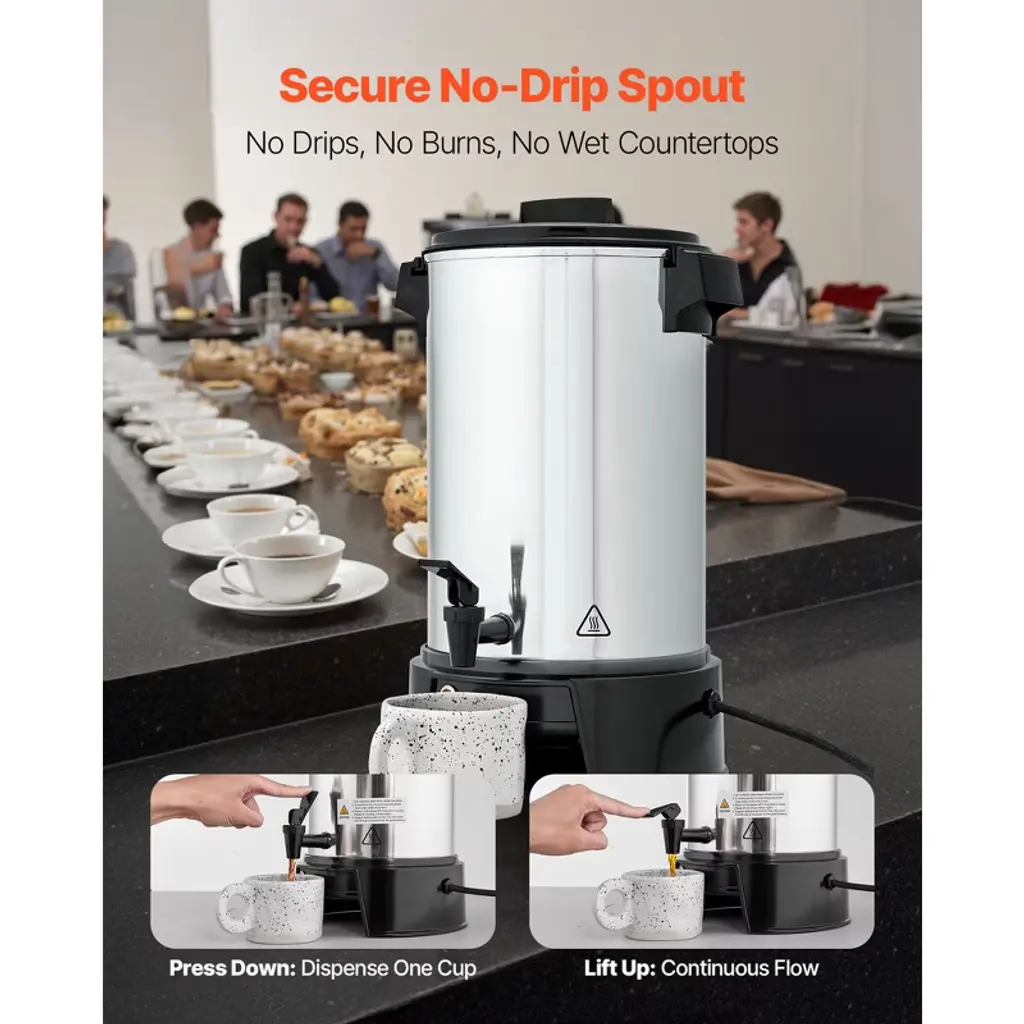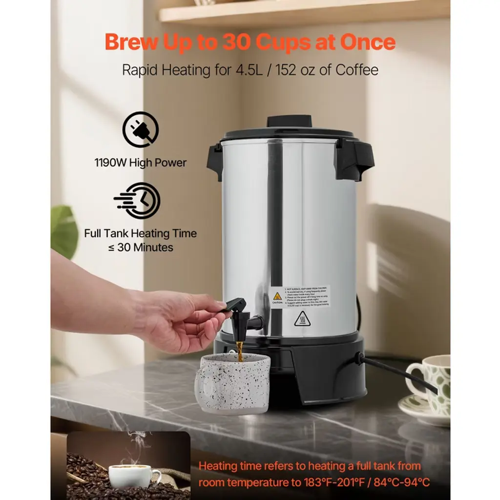 Vevor Commercial Coffee Urn, 30 Cup 4.5 L Hot Beverage Dispenser With Dripless Faucet, Quick-brewing Commercial Coffee Maker, Silver