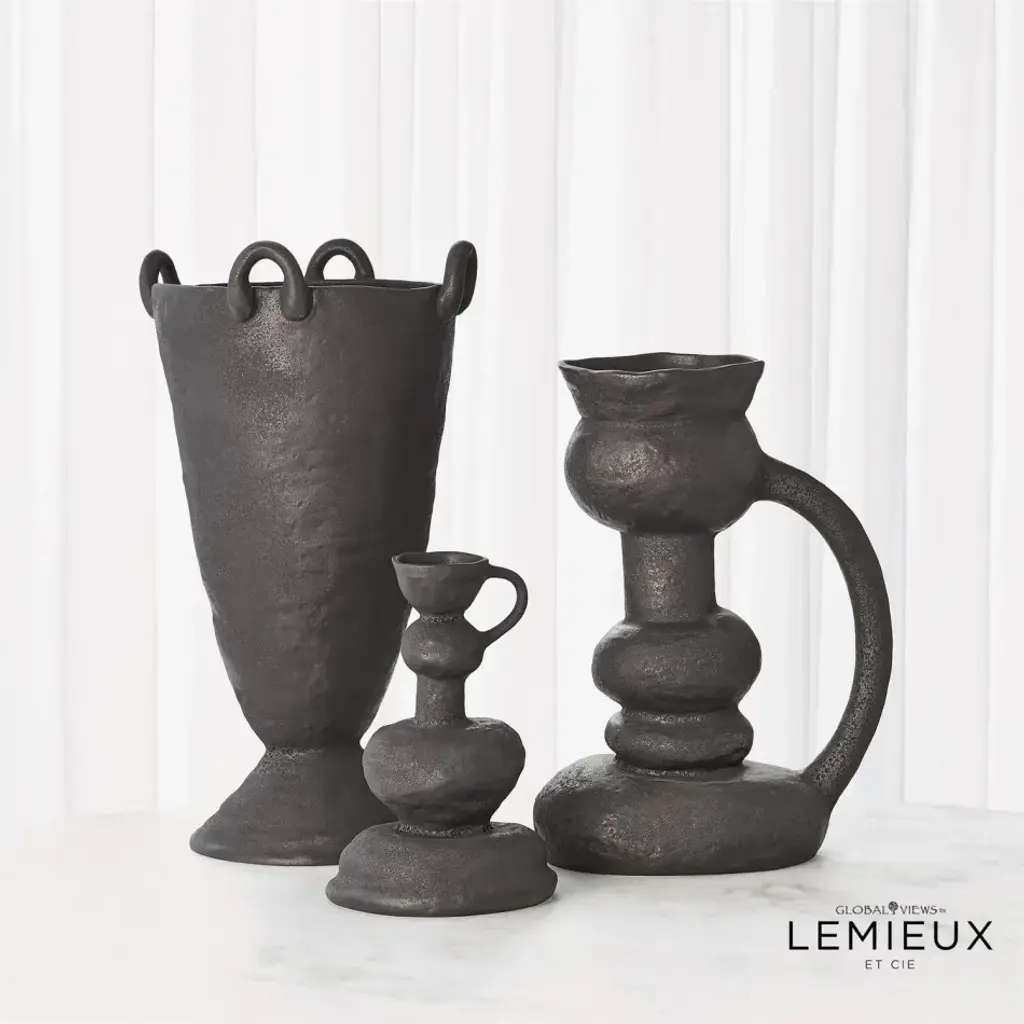 The Victoire vase is handmade in ceramic and beautifully organic in shape. The evidence of the hand of the artist makes this piece equal parts functional vessel and heirloom piece. From a fashion forward perspective, Global Views offers accessories, furniture, statement lighting, and an assortment of rugs and mirrors to add beauty and joy to your home.