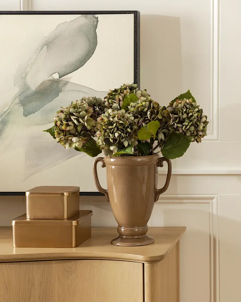 Made from earthenware with a glossy glaze, the Victoire Vase brings a grounding presence to your vignettes. The handled ceramic vase comes in thre e forms, each rich in tone and intentional design details.