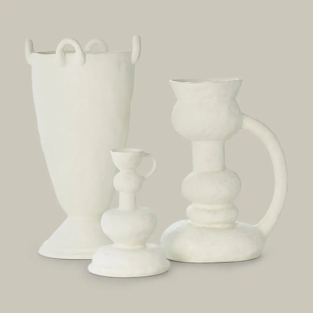 The Victoire Vase is handcrafted in ceramic and beautifully organic in shape. The evidence of the artisan’s hand of the artist makes this vessel equal parts functional and heirloom.