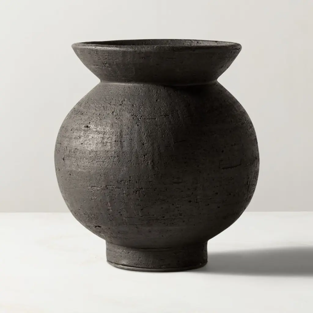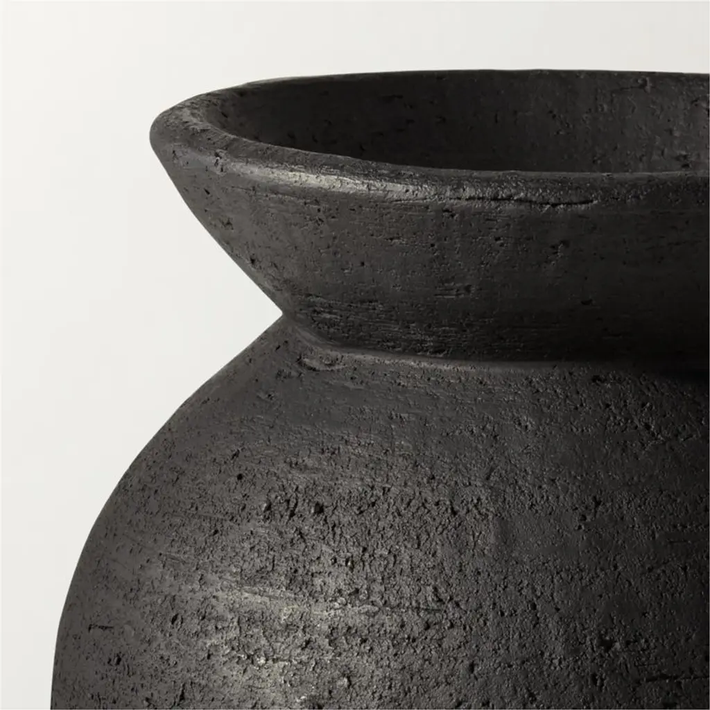Terracotta vase with black glaze finish works all the angles, from its simple base to round curves and angled lip. Natural terracotta shade is visible on the interior, adding to the organic feel. Gorgeous on its own as a statement piece or displaying dried blooms. CB2 exclusive.