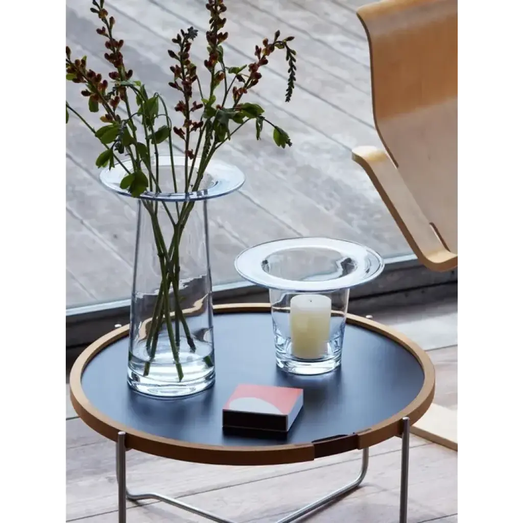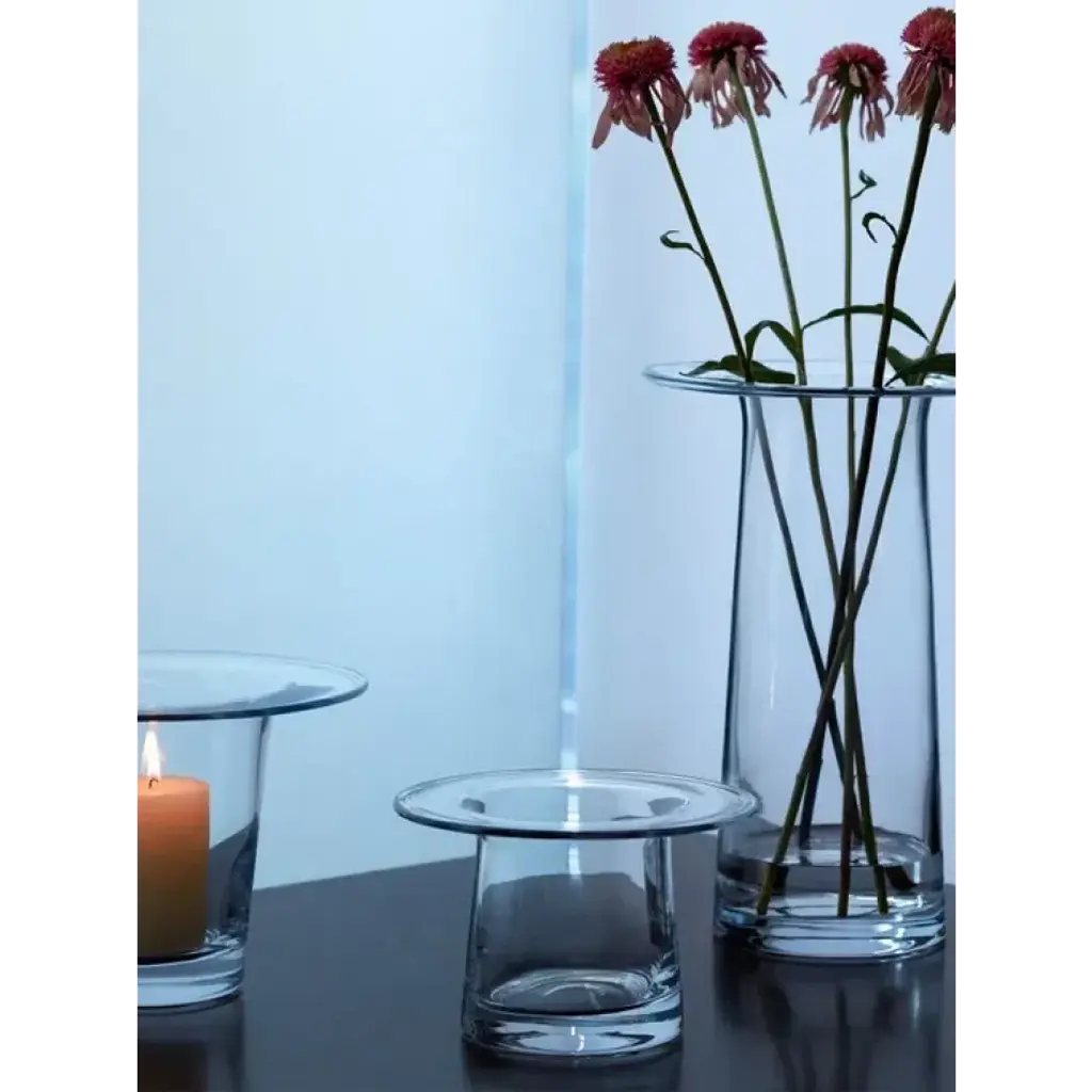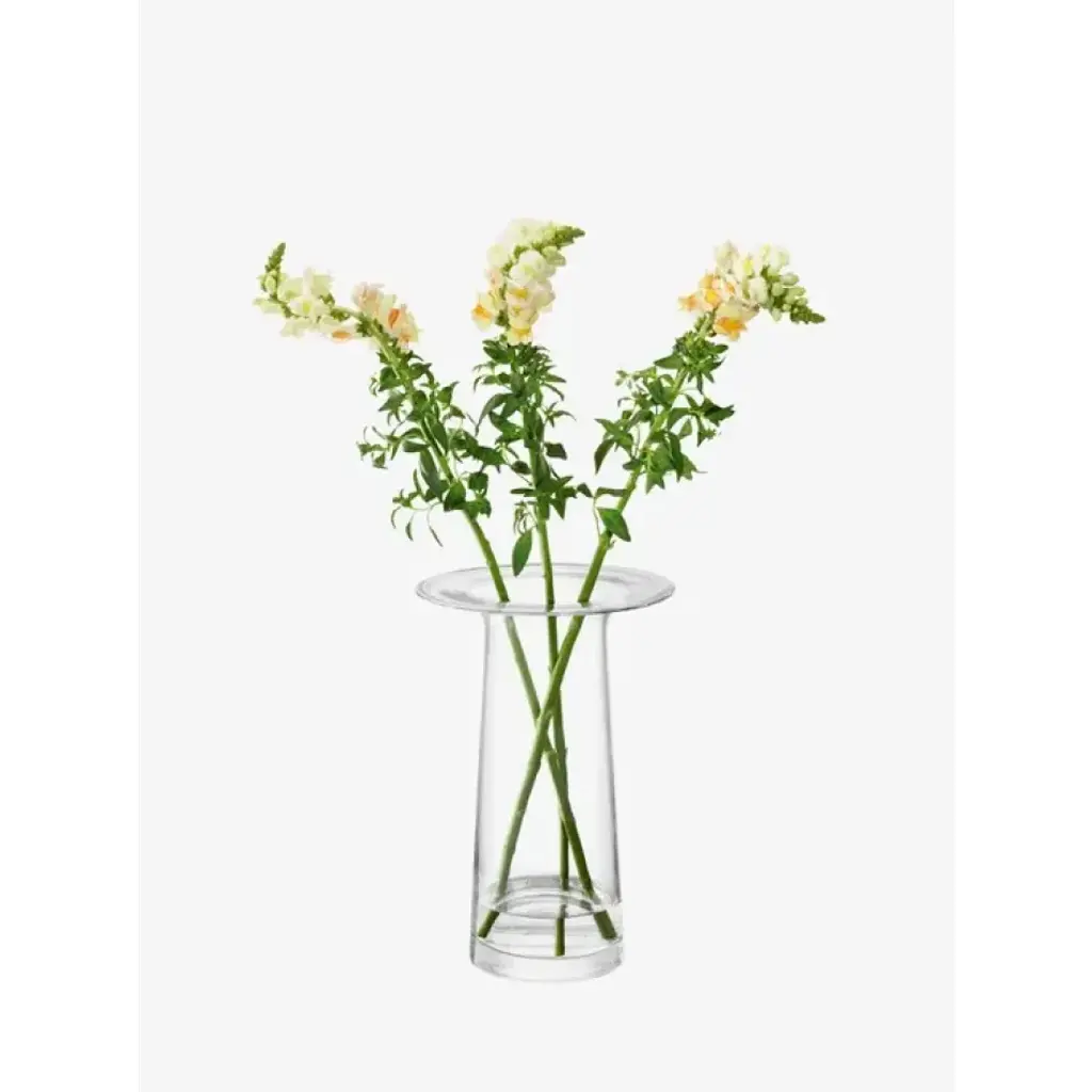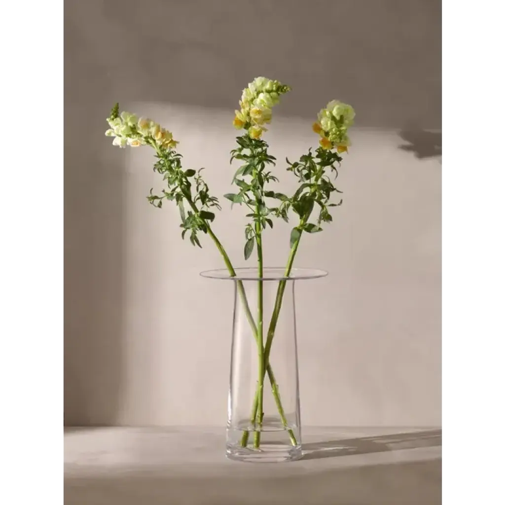 A mouth-blown vase with thick walls that fold outwards at the top into a wide and flat brim. Designed for leafy foliage or generous floral bouquets. A versatile and contemporary design in tribute to Victoria's creativity and partnership with LSA. For each Victoria vase sold, LSA will donate to Sarcoma UK in her memory.